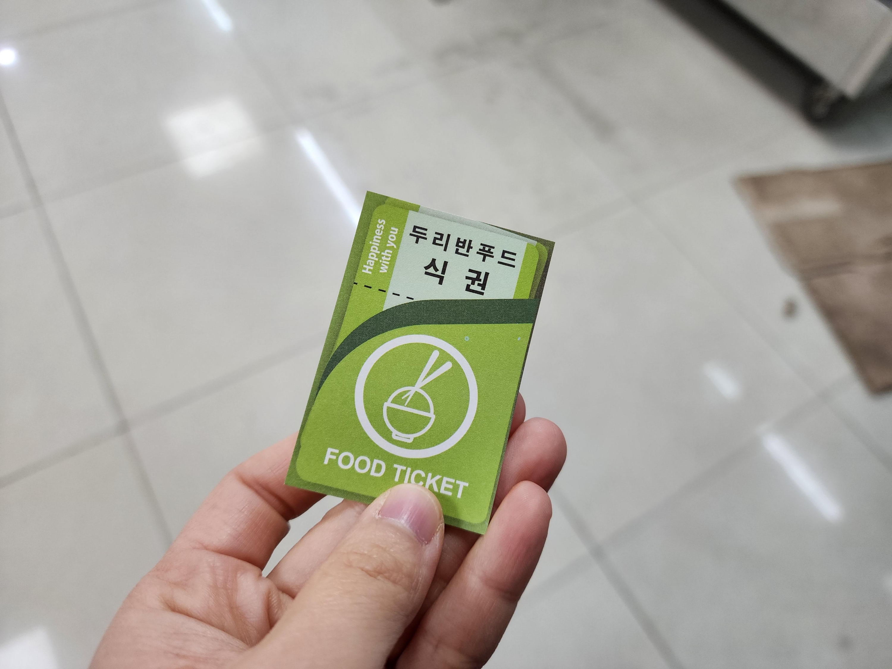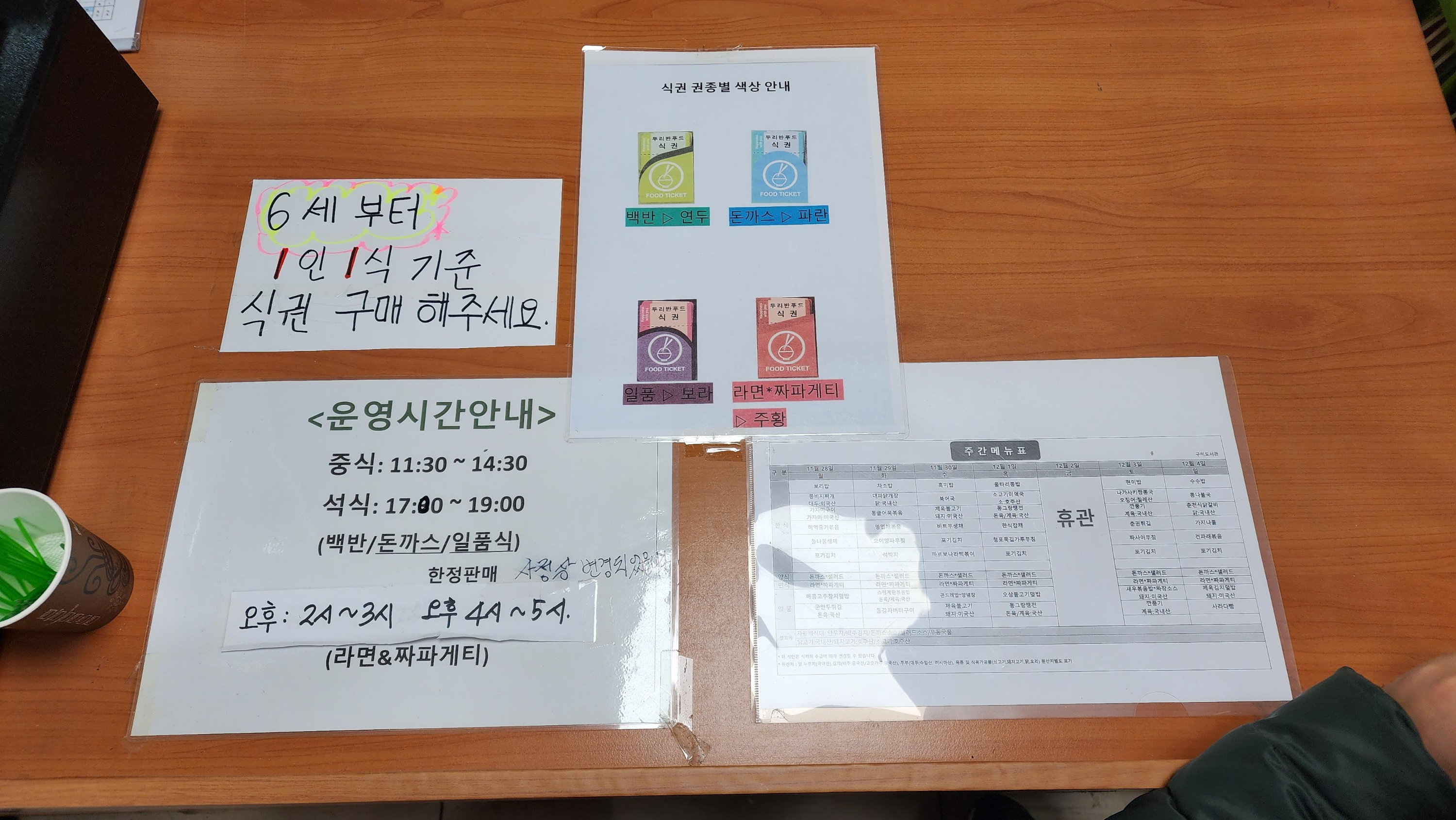 구내식당 앞에 식권발매기가 있는데요 현금전용이라 카드로 결제하려면 매점에 가서 식권을 사야 하더라구요.