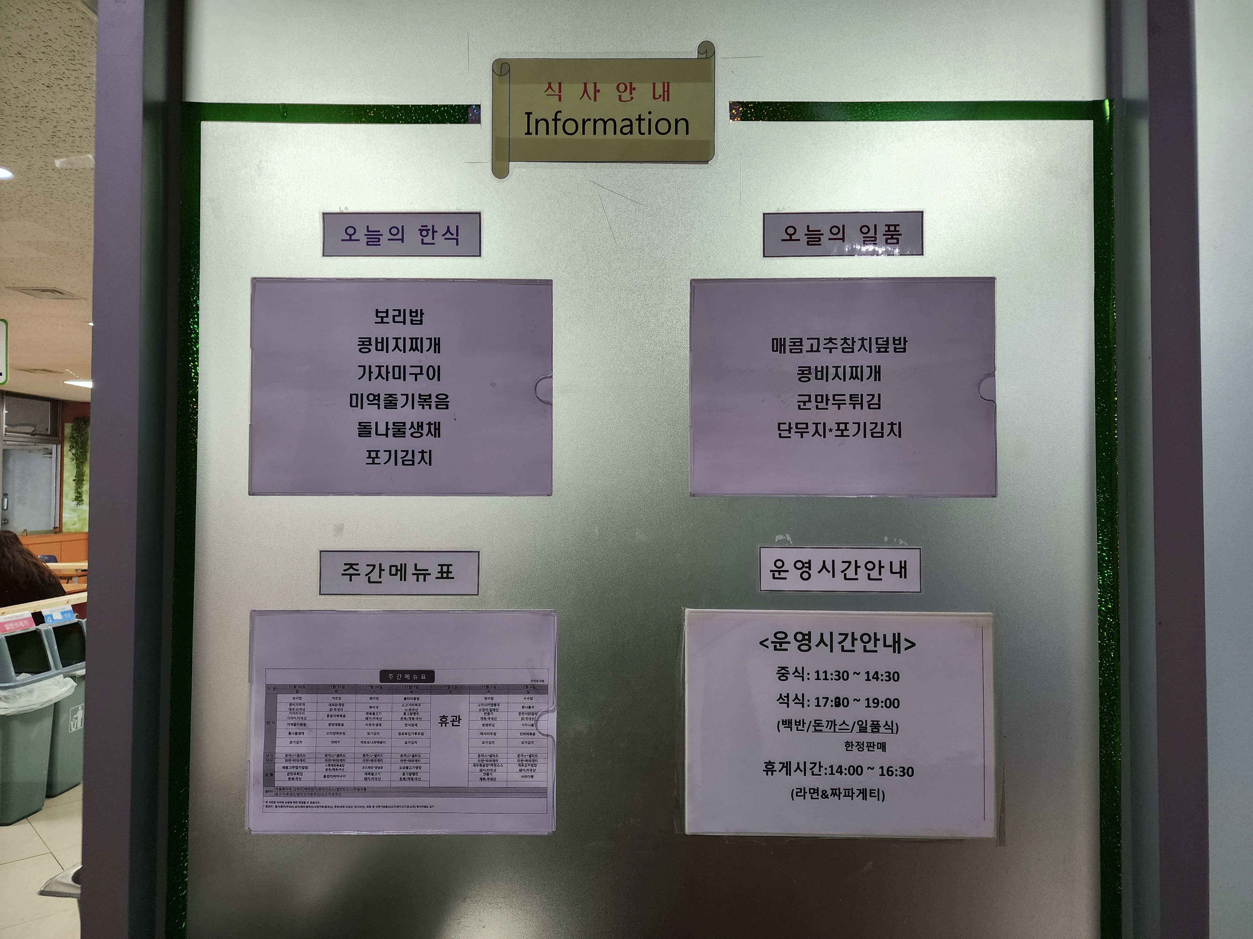 식당 앞에는 메뉴표가 나와있어서 보시고 어떤것을 드실지 선택하시면 되어요.