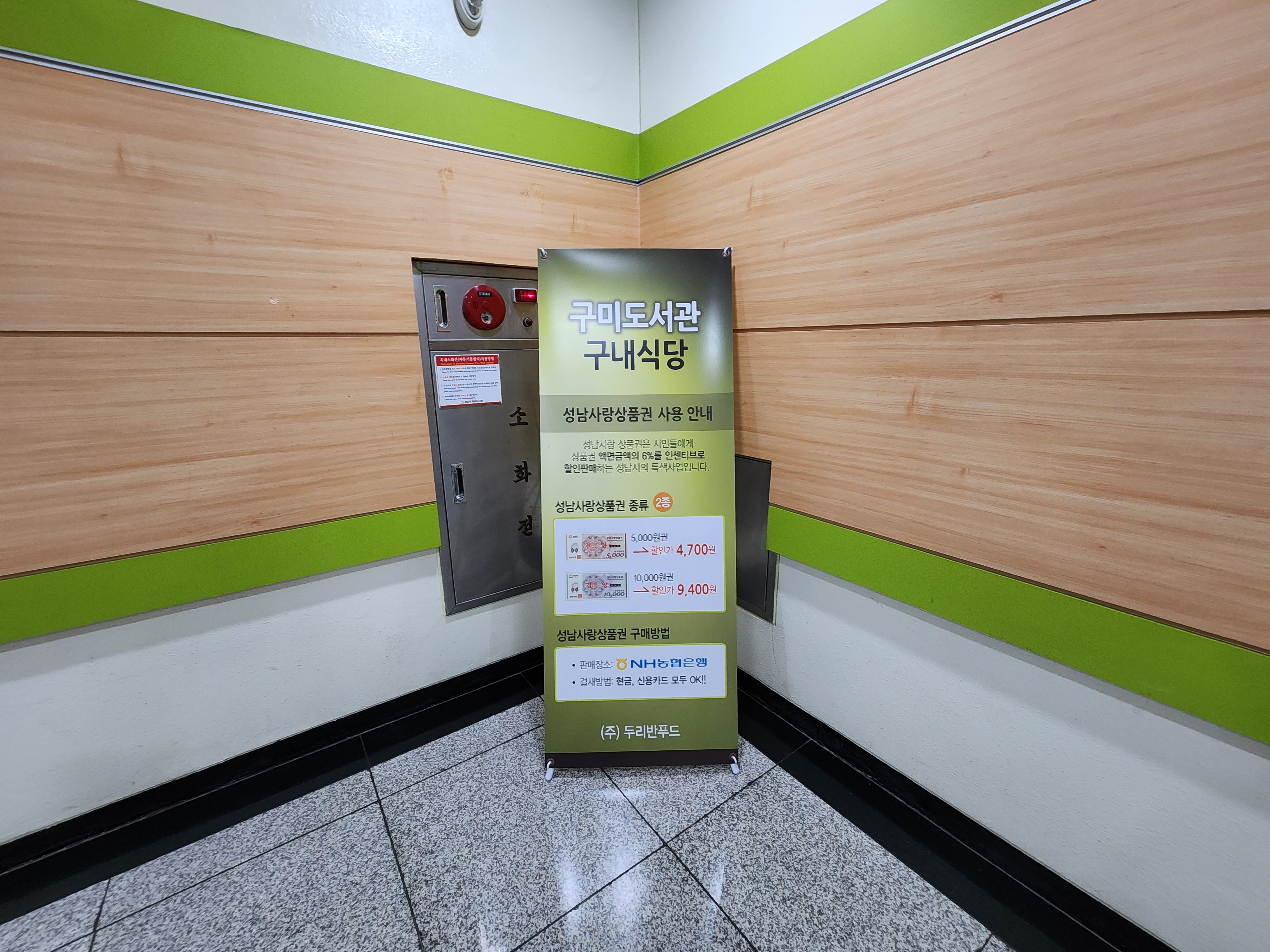 구내식당에서는 성남사랑 상품권 사용이 가능하다고 홍보 중이더군요.