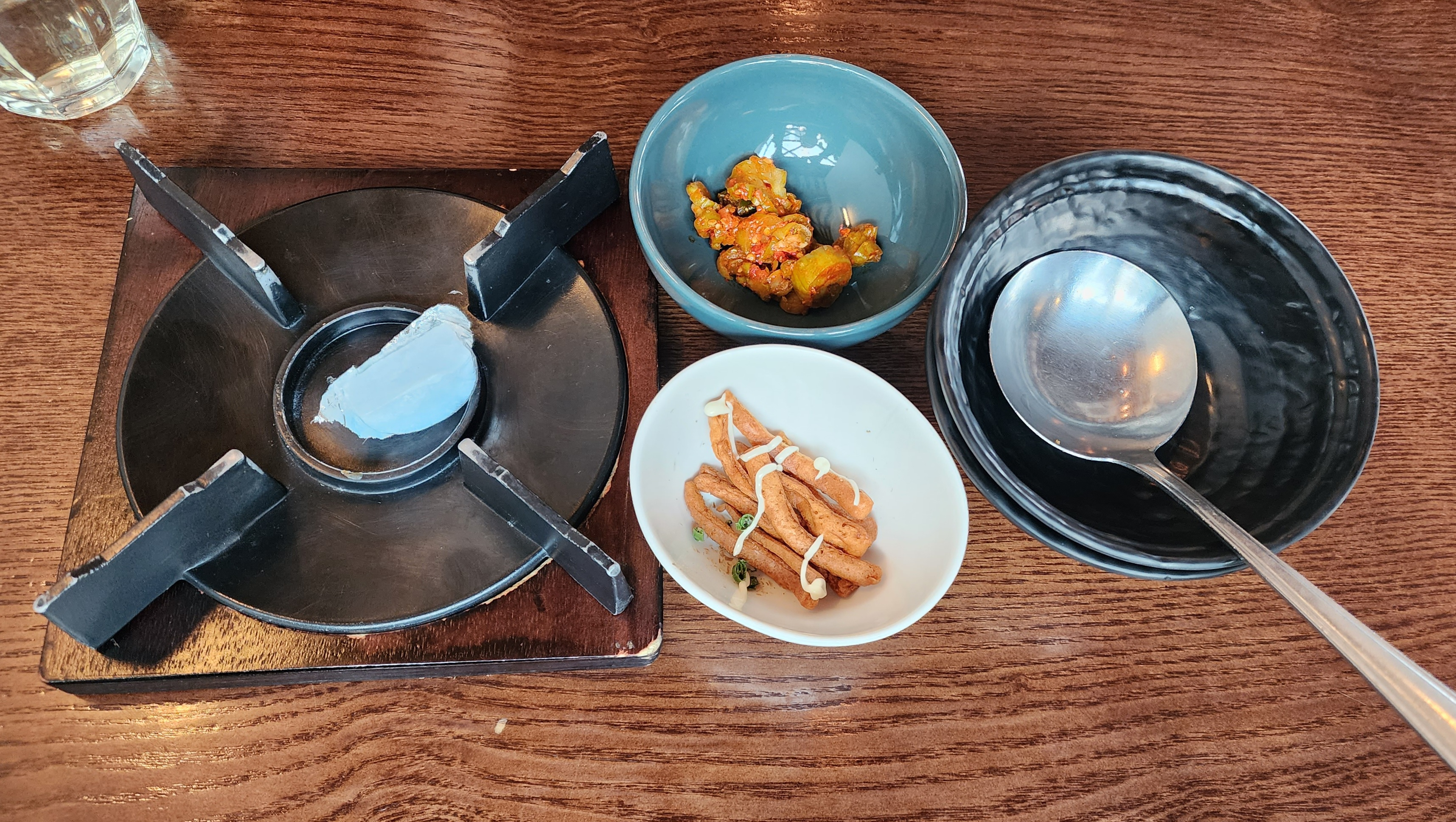 나중에 순두부 올려 놓고 먹을 고체연료 놓은 화로도 가져다 주더군요.