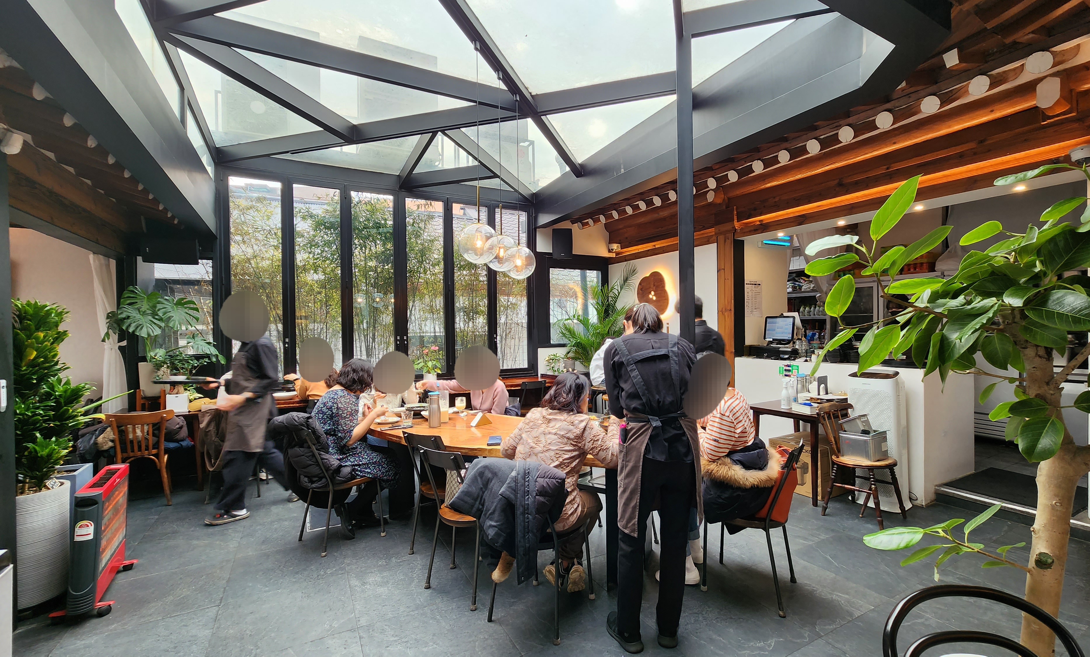 한옥 느낌이 나는 외관에 통창으로 식당의 개방감을 더했더라구요.