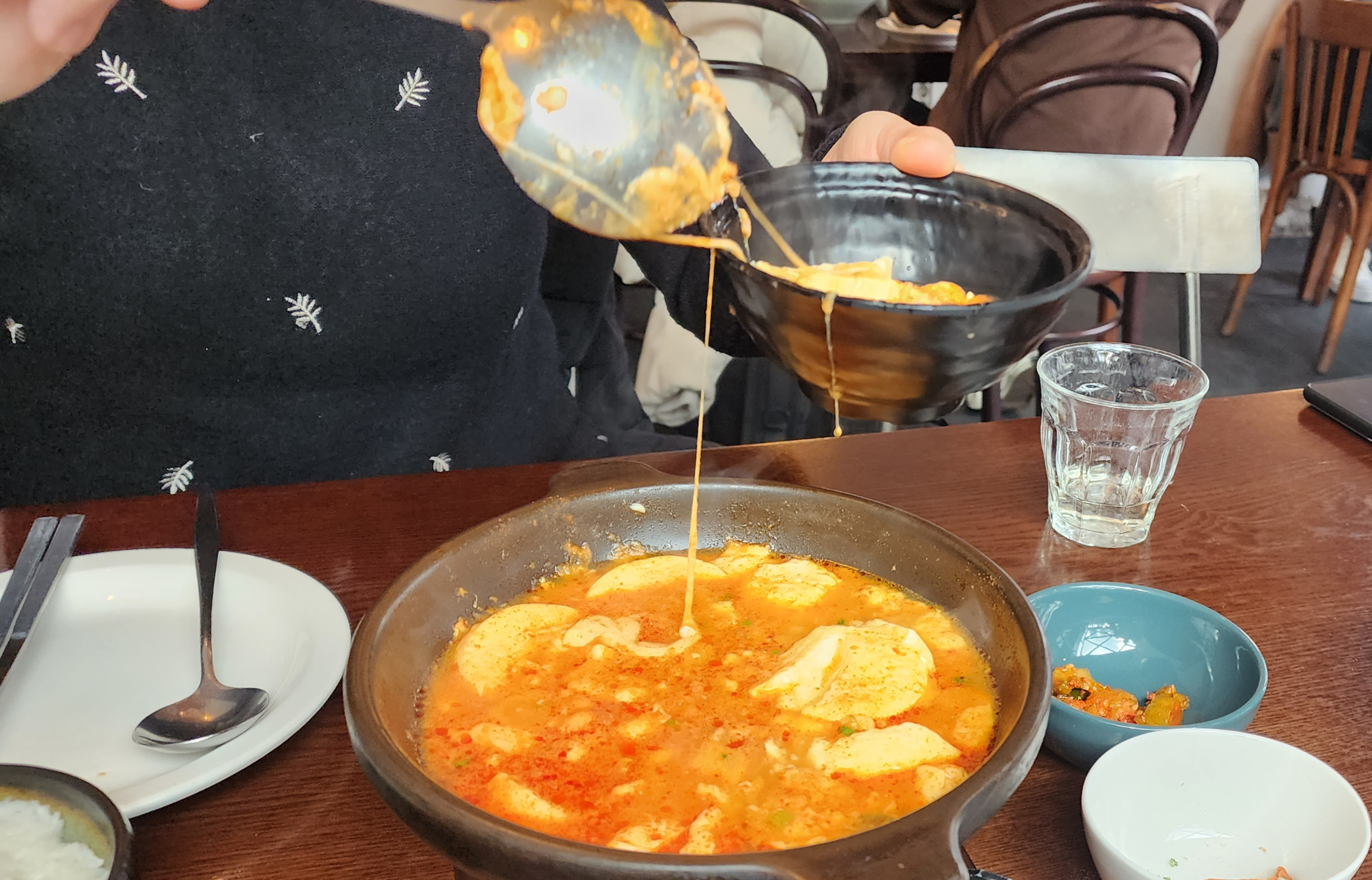 순두부에 치즈가 많아서 죽죽 늘어나더라고요.