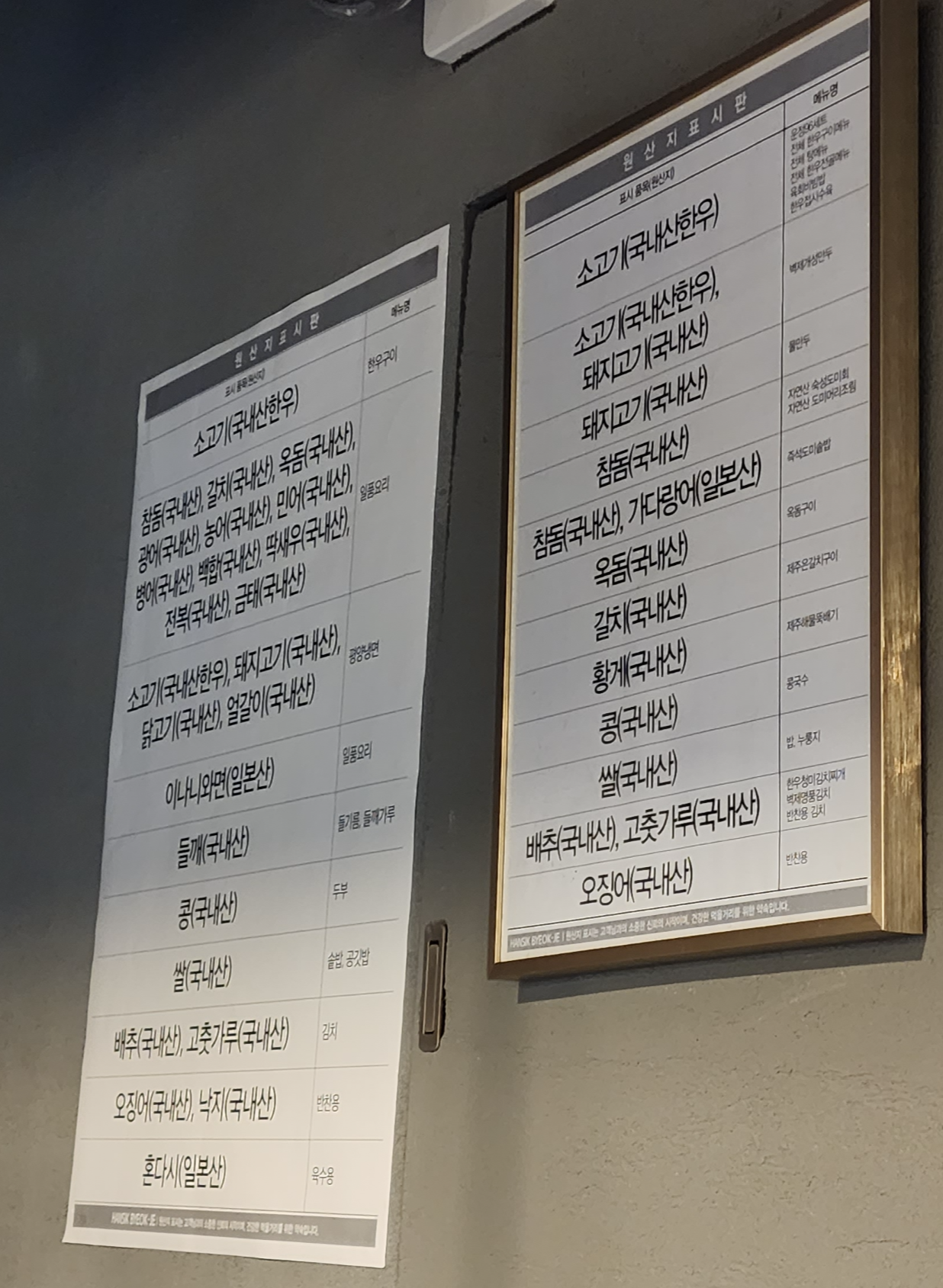 소고기는 국내산 한우, 바다에서 나는 것들은 국내산으로 내어놓는걸 확인 할 수 있었어요.