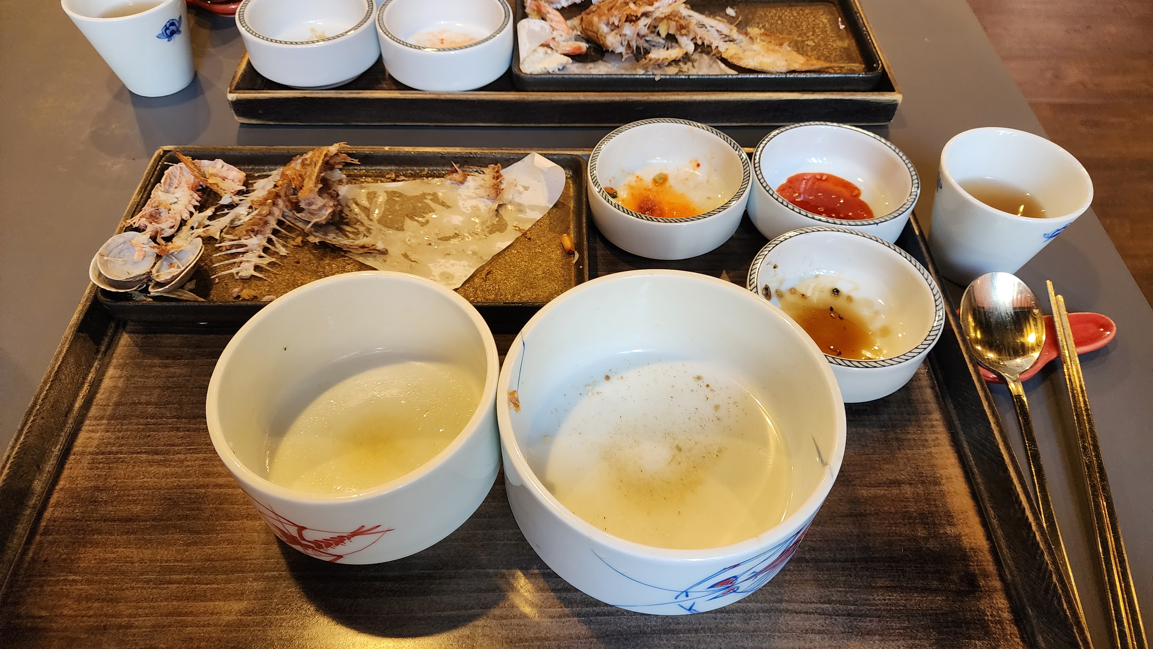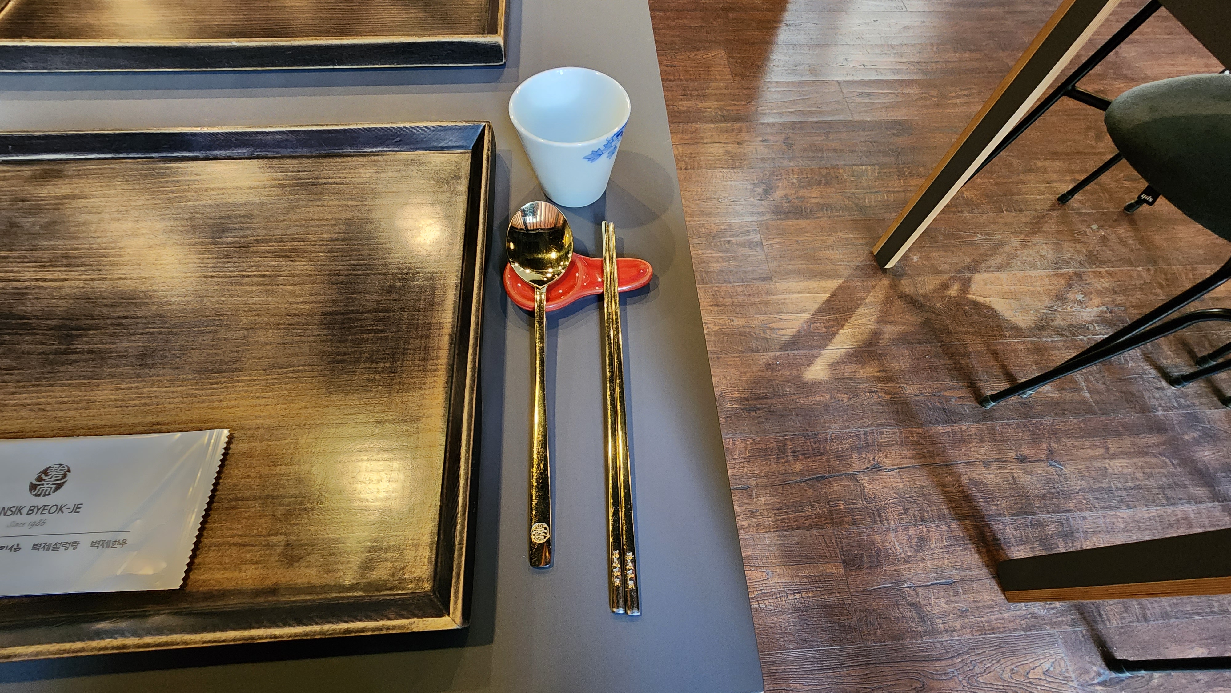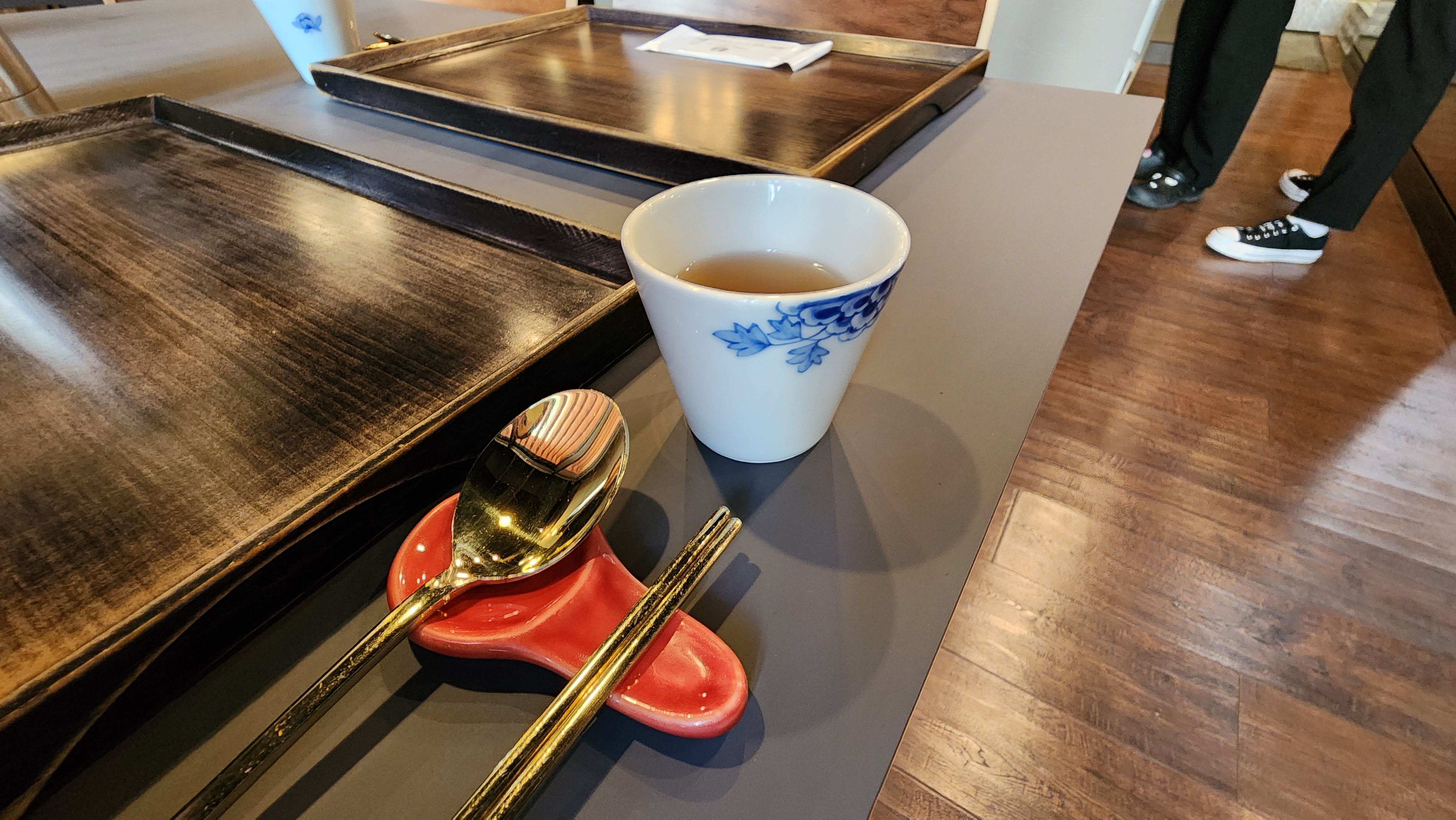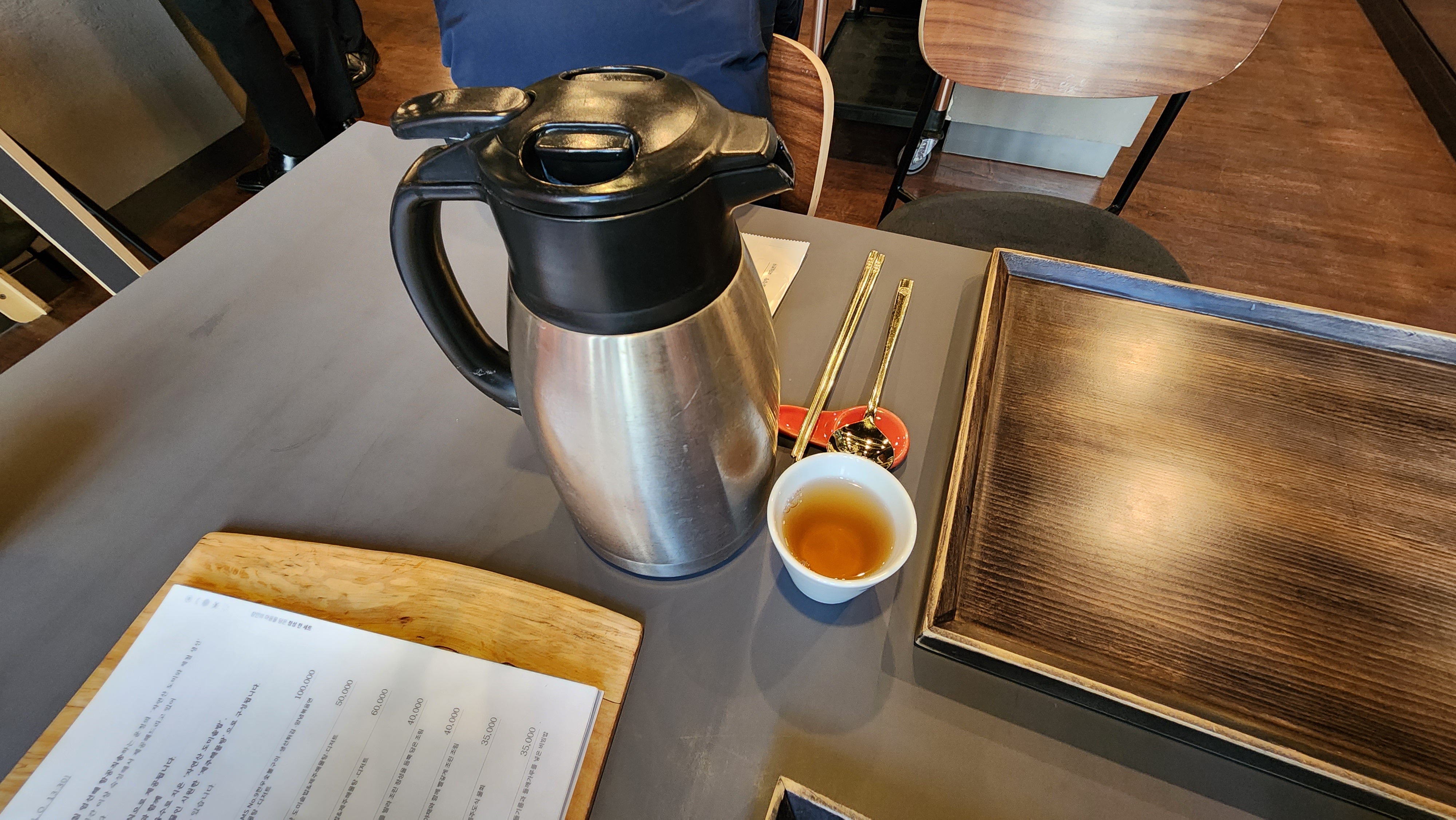 개인 식기를 가져다 주셨고, 따뜻한 차가 나왔어요.