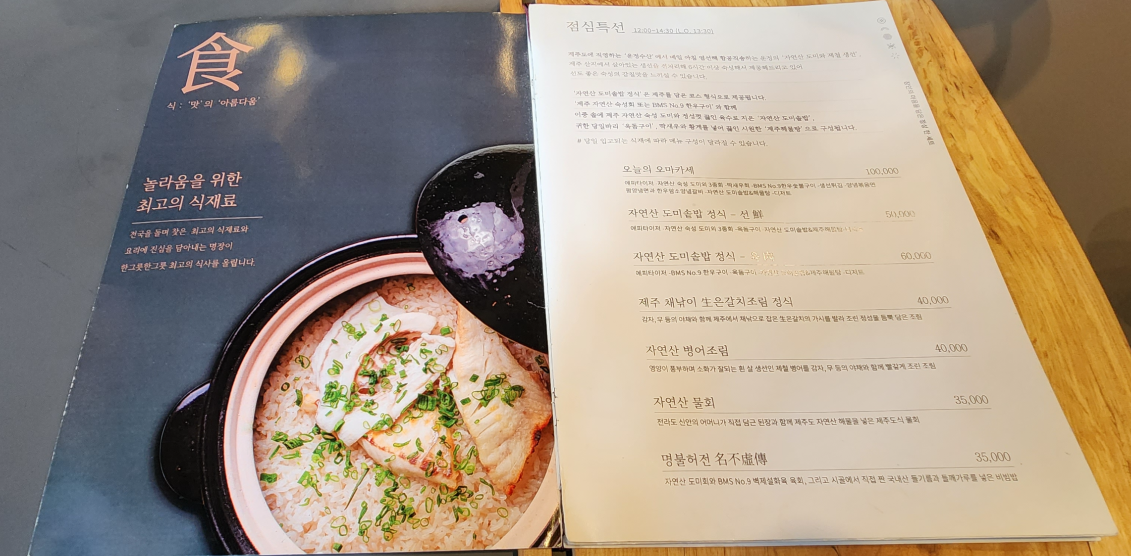 저는 자연산 도미솥밥 정식 선(50,000원) 과 자연산 도미솥밥 정식 육(60,000원)을 주문했어요.