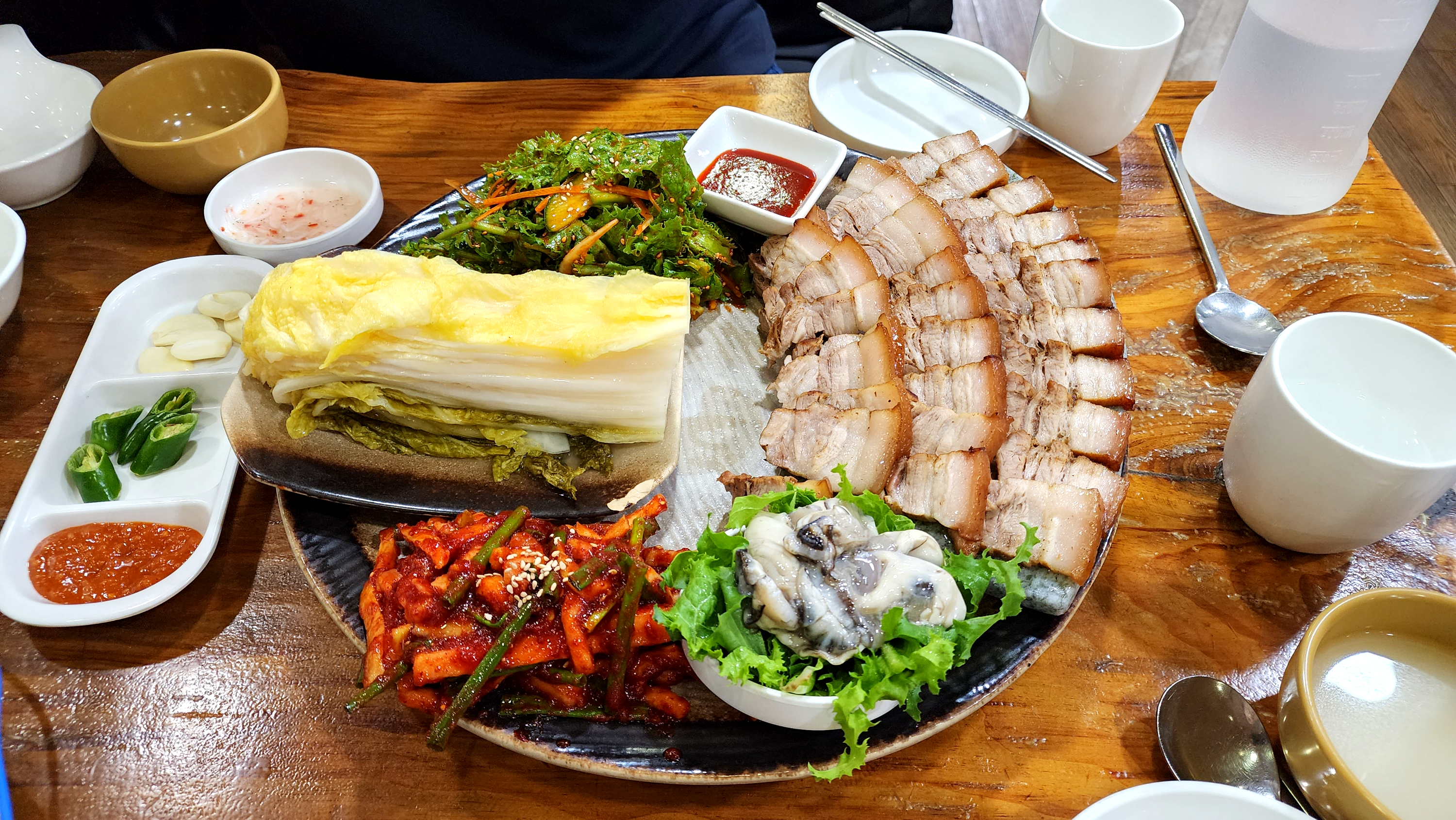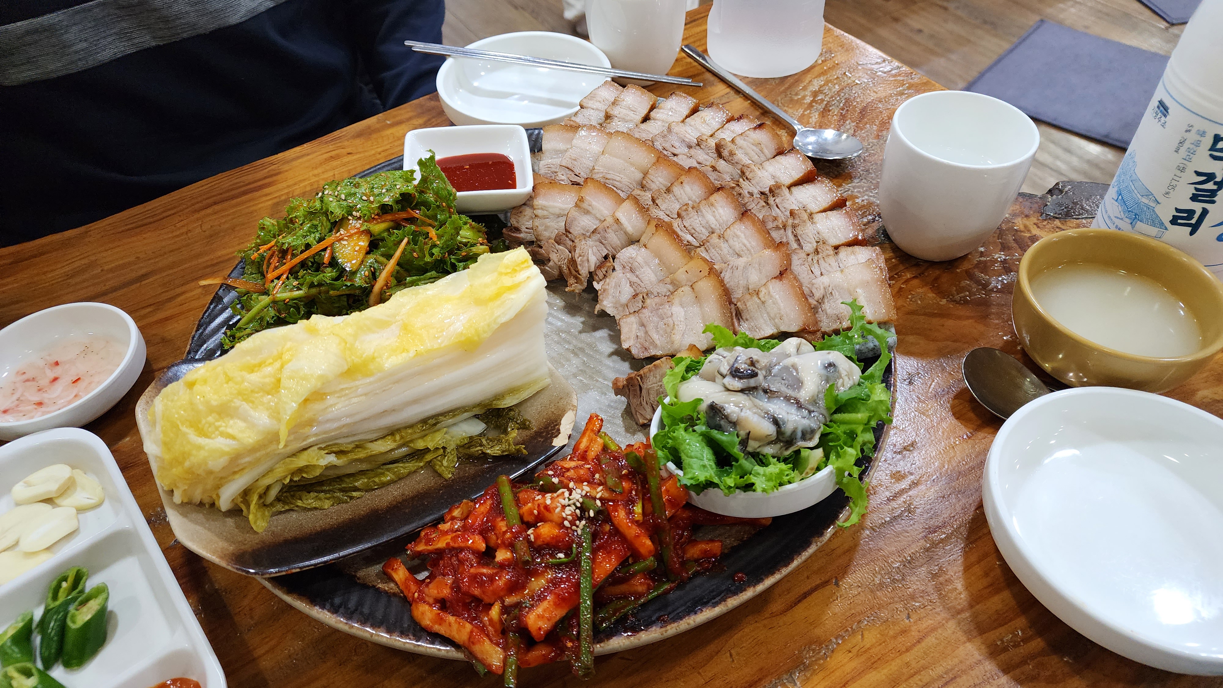 보쌈 구성이 깔끔해요. 치커리 무침, 보쌈무김치도 맛있는데 절인 배추가 너무 맛있어서 고기보다 더 열심히 먹게 됐어요.