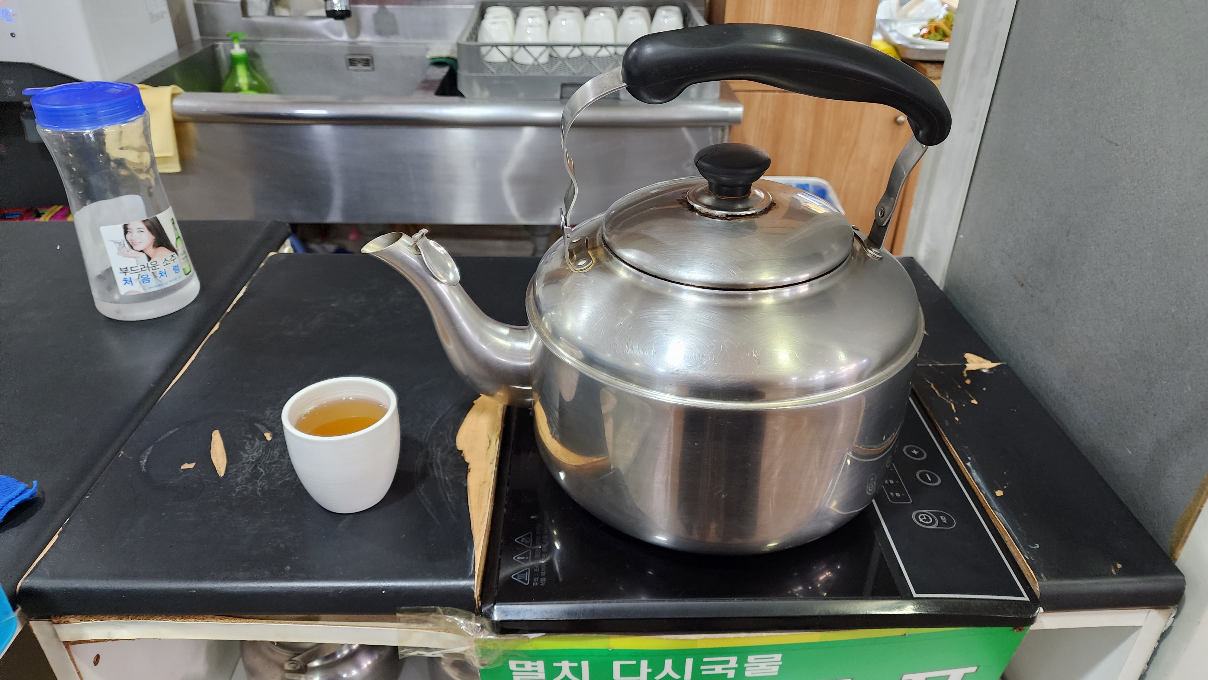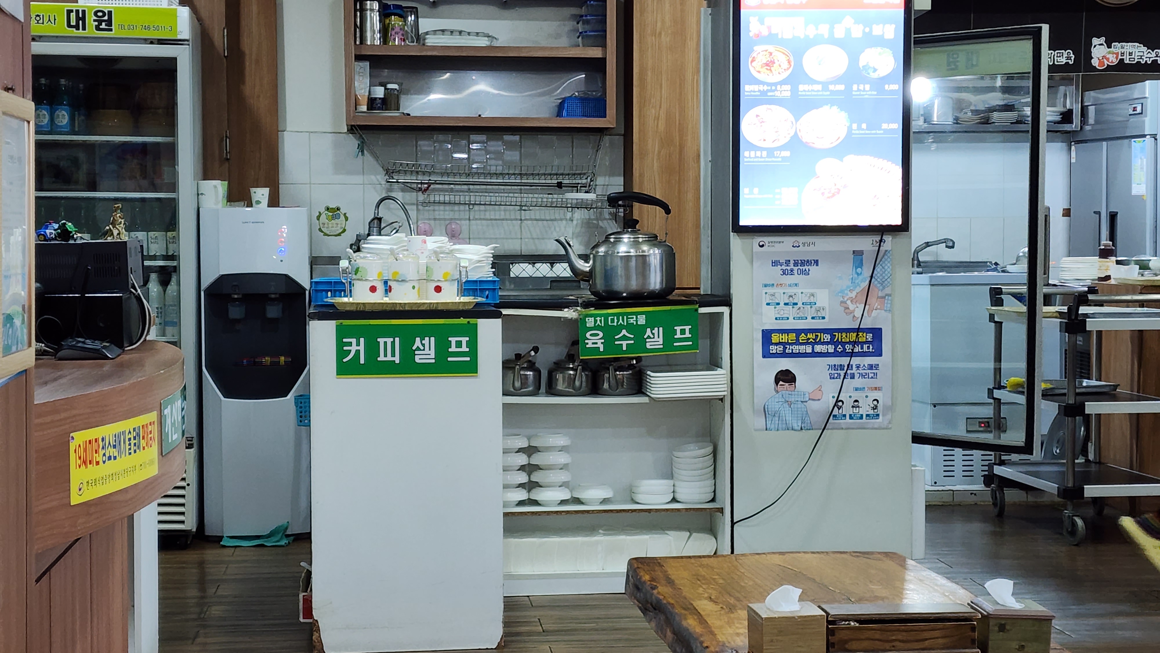 육수는 셀프코너 이용하라고 나와있는데 요렇게 셀프코너에서 제공되고 있어요.