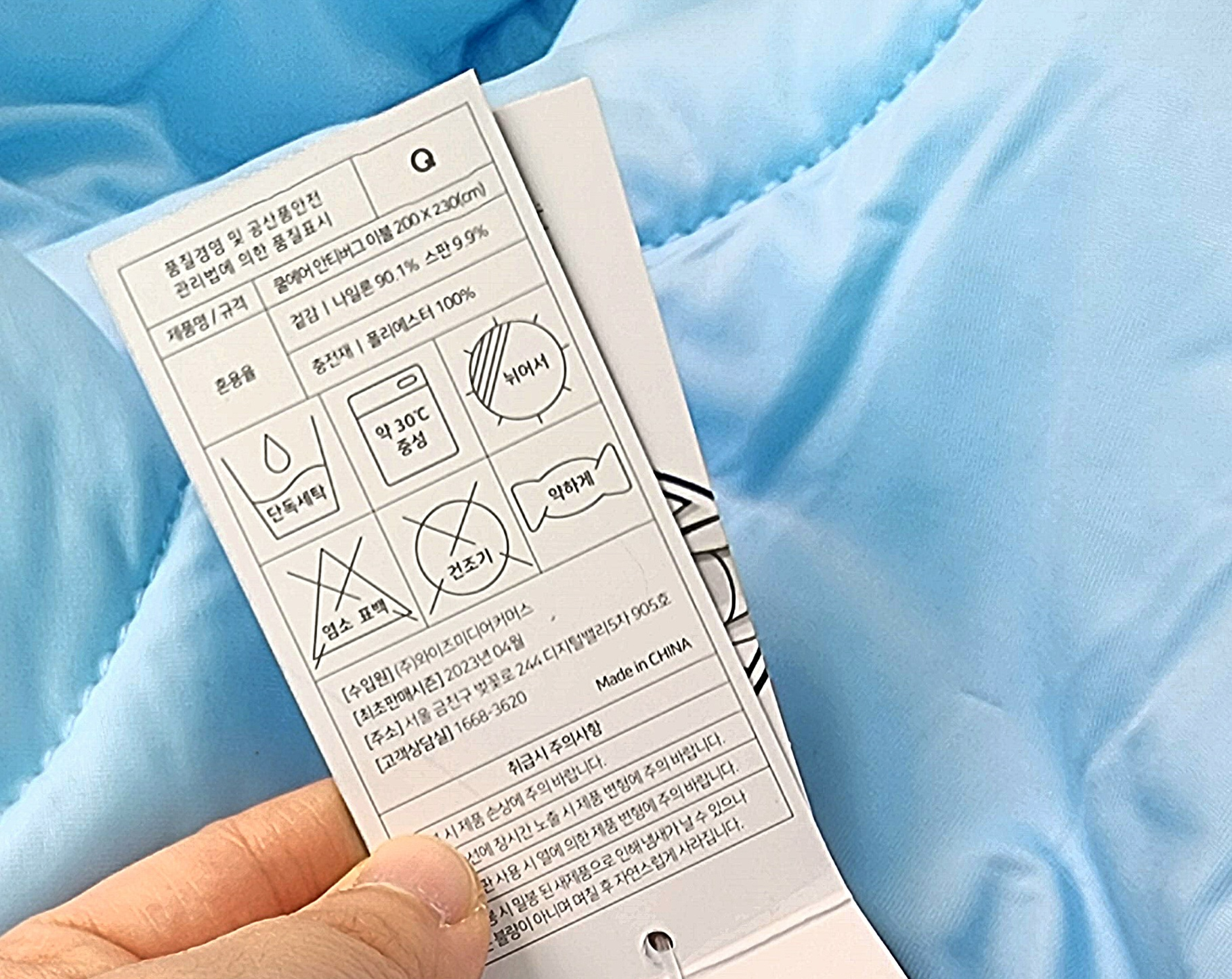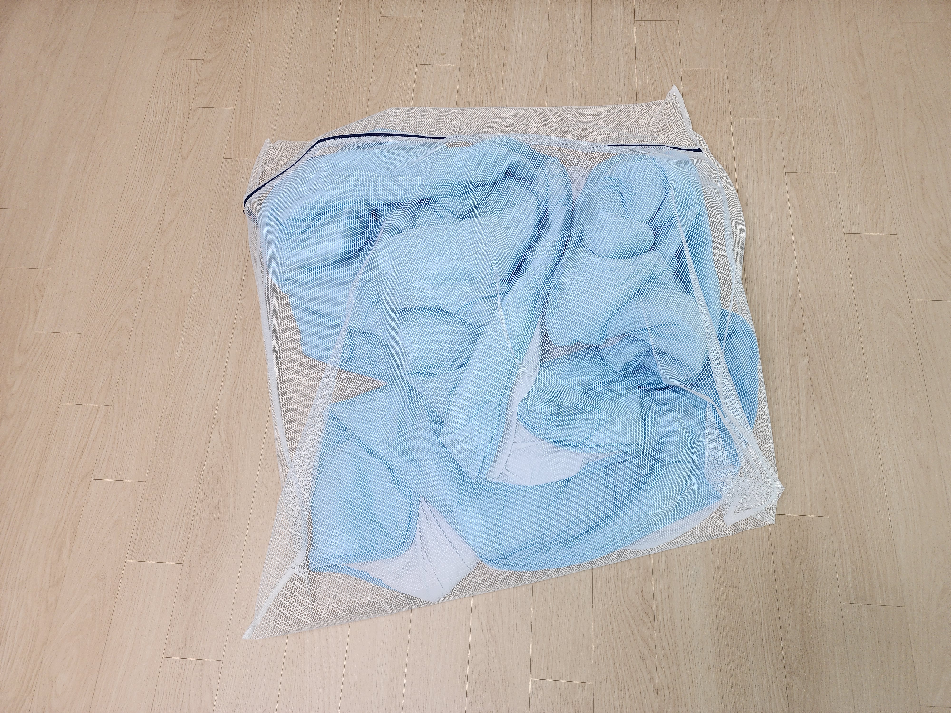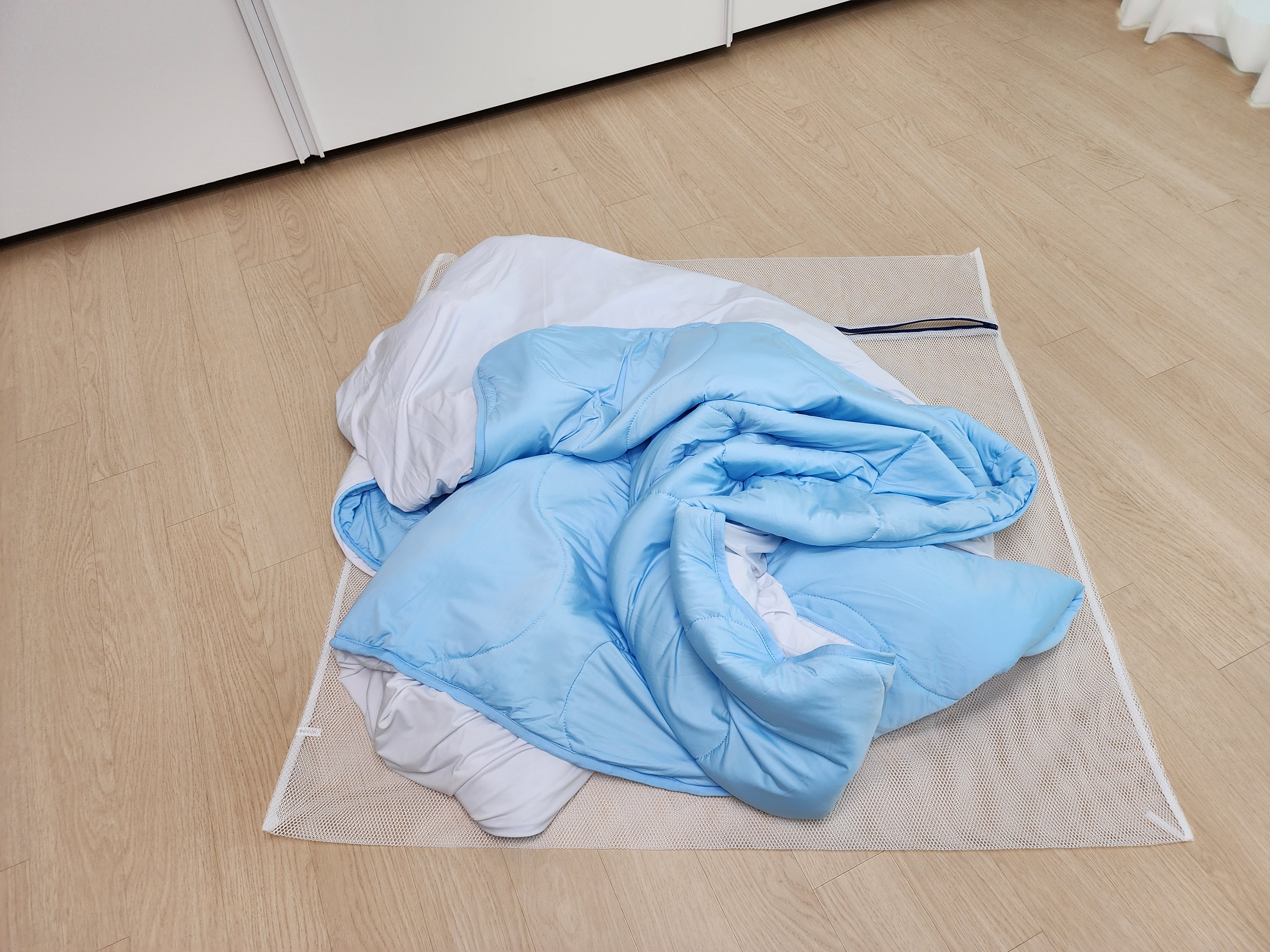 기능성 이불이라 세탁이 까다롭지는 않을까 걱정했었는데요, 집에서 통세탁이 가능합니다.