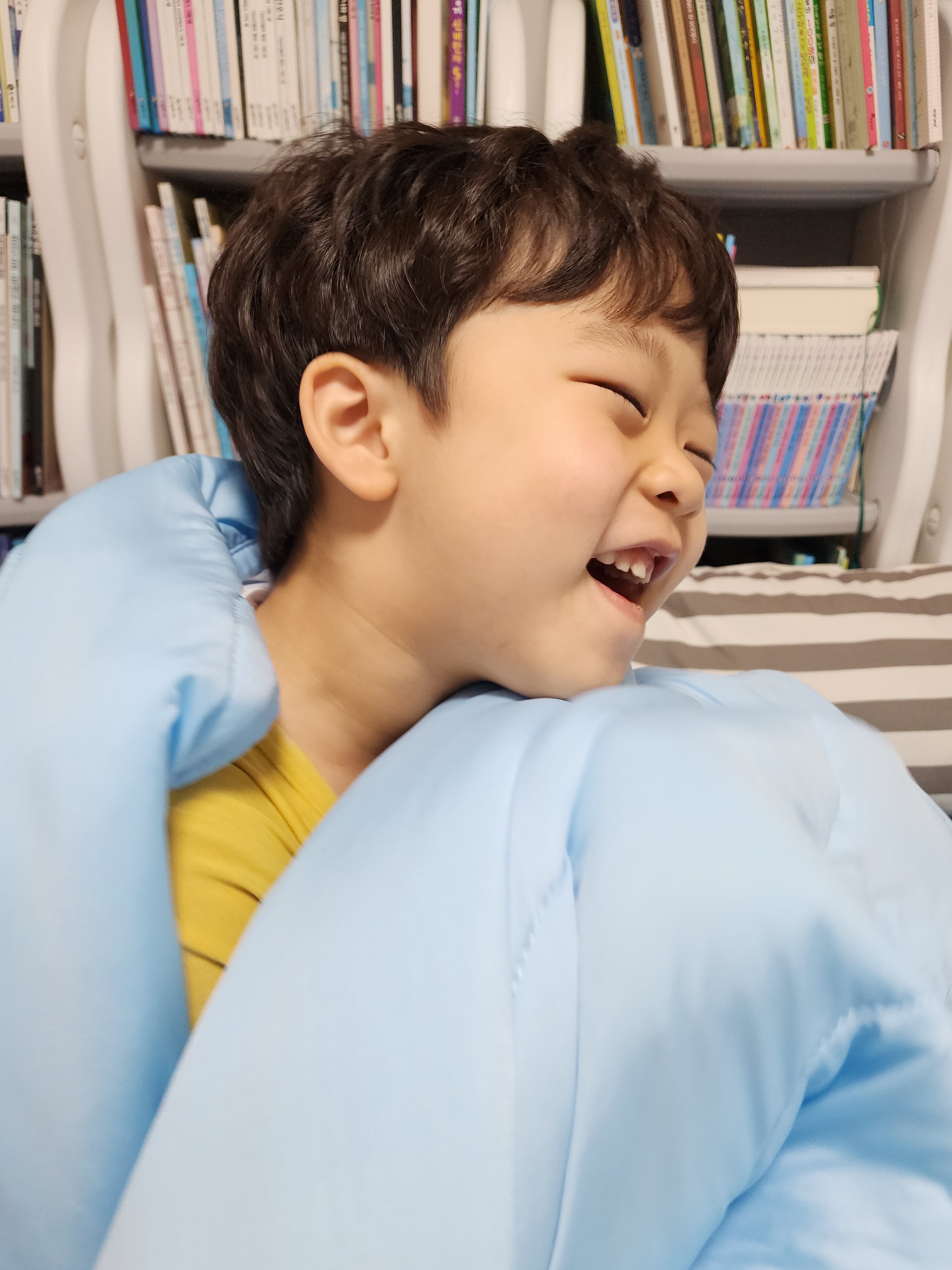 집에서 텔레비전 시청할 때도 몸에 둘둘 감고 보고, 이불로 김밥말이도 해달라고 ㅎㅎㅎ