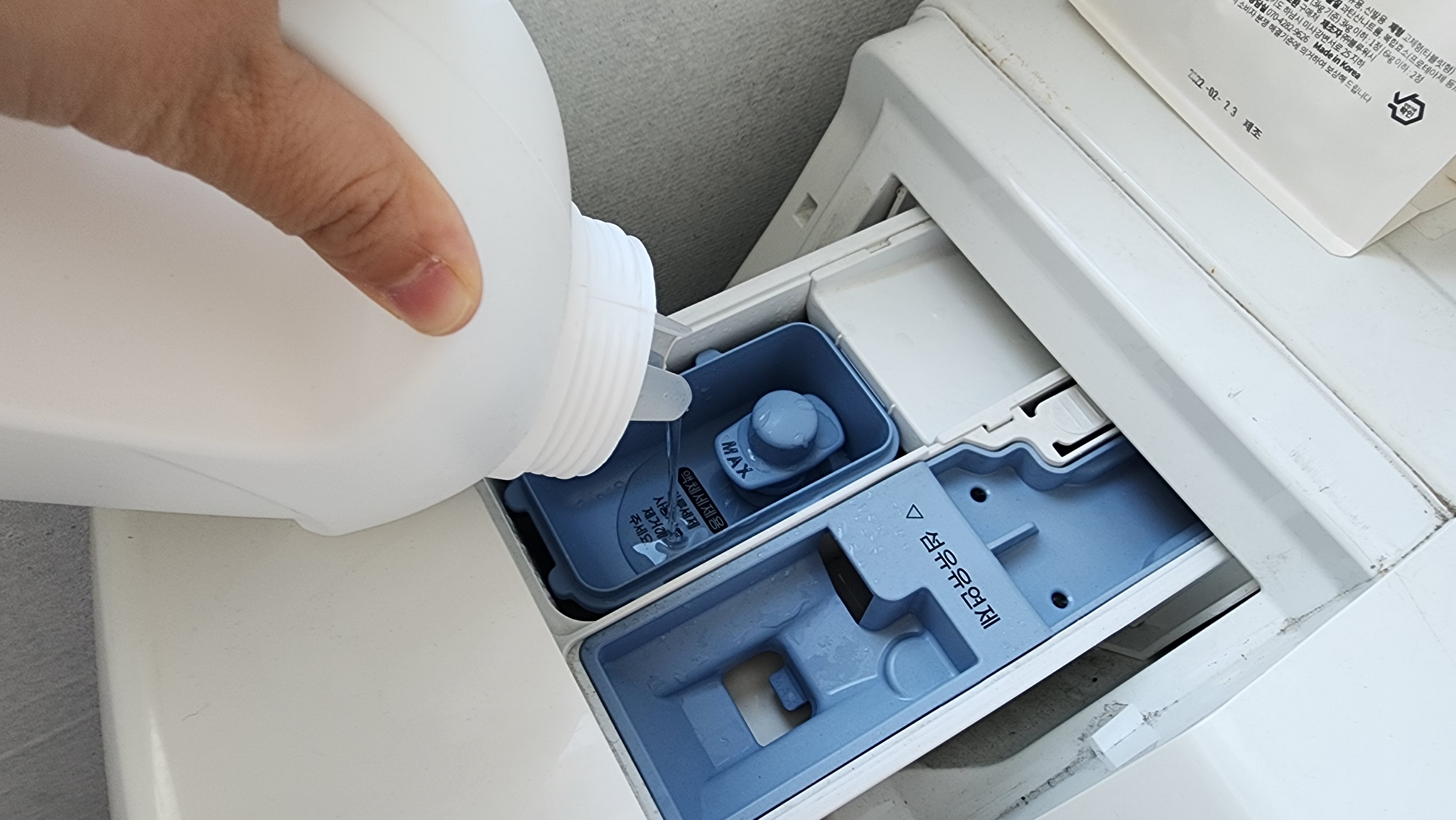저희집 드럼세탁기에 이불 충분히 들어갔고요, 중성세제 준비해서 넣었어요.