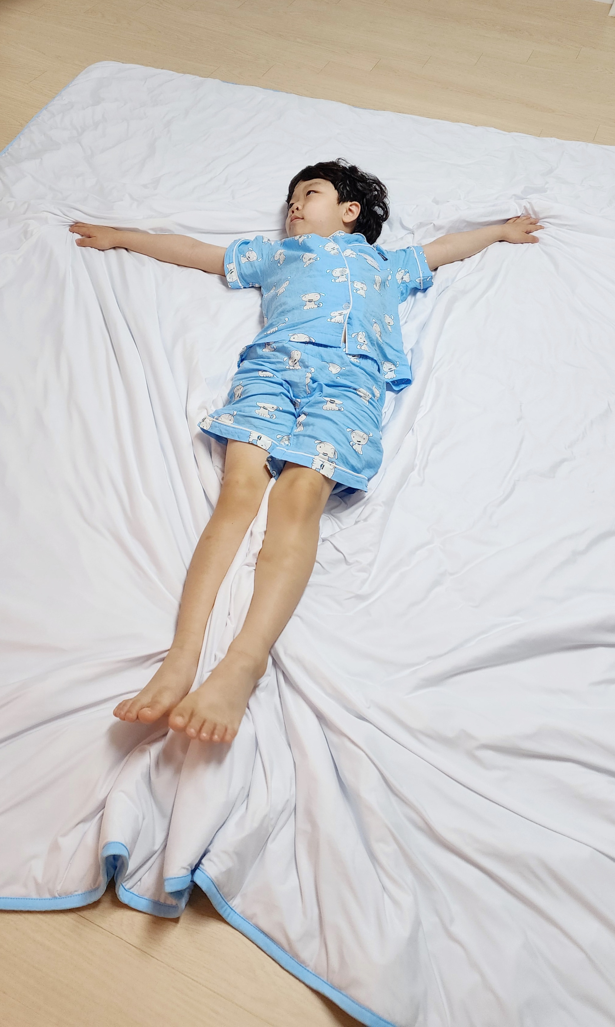 평소 이불 안덮고 자는 저희 아이가 시원한 느낌에 반해서 이불을 덮고 자게 된 것에 애미 마음이 흡족합니다.