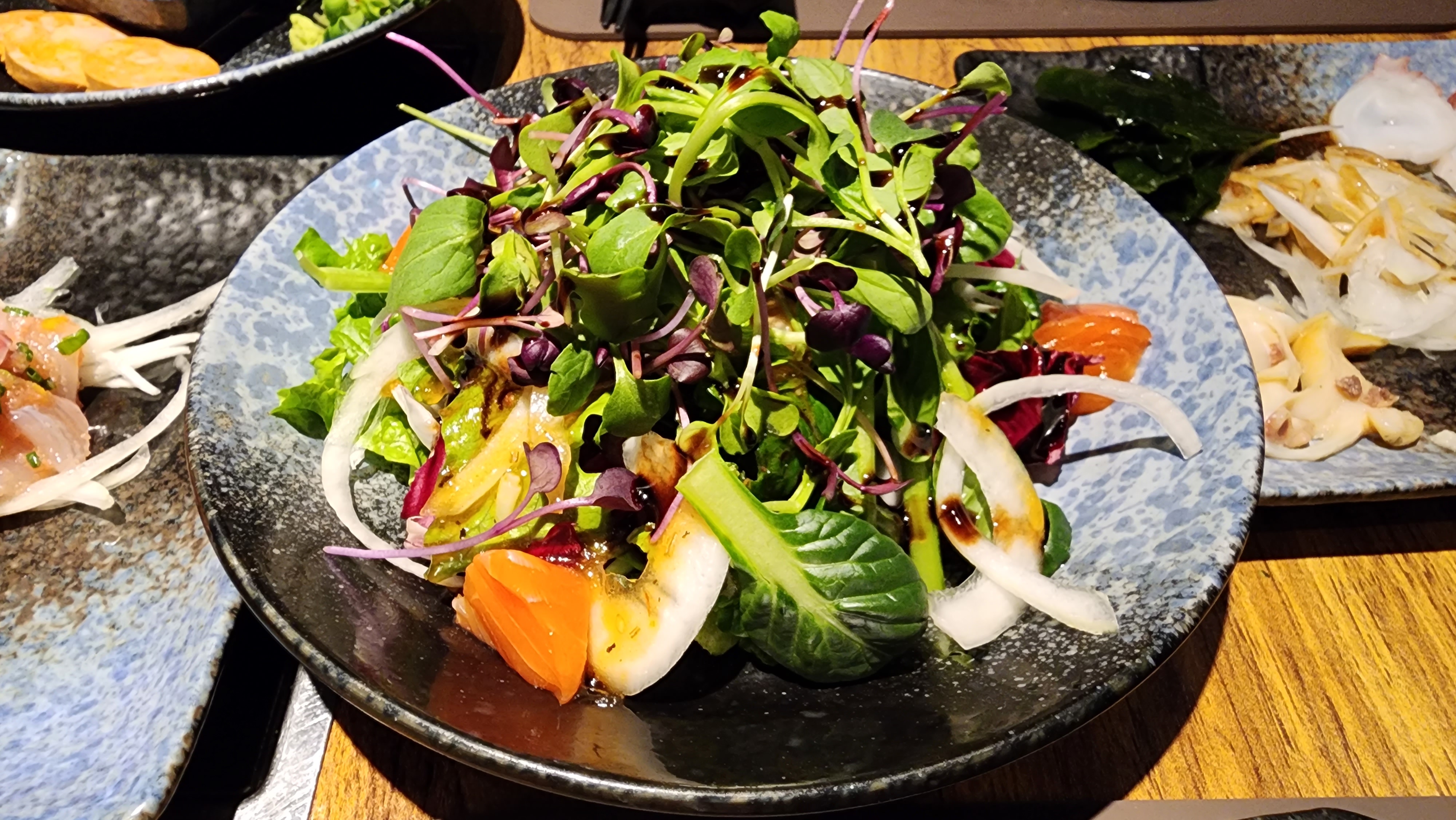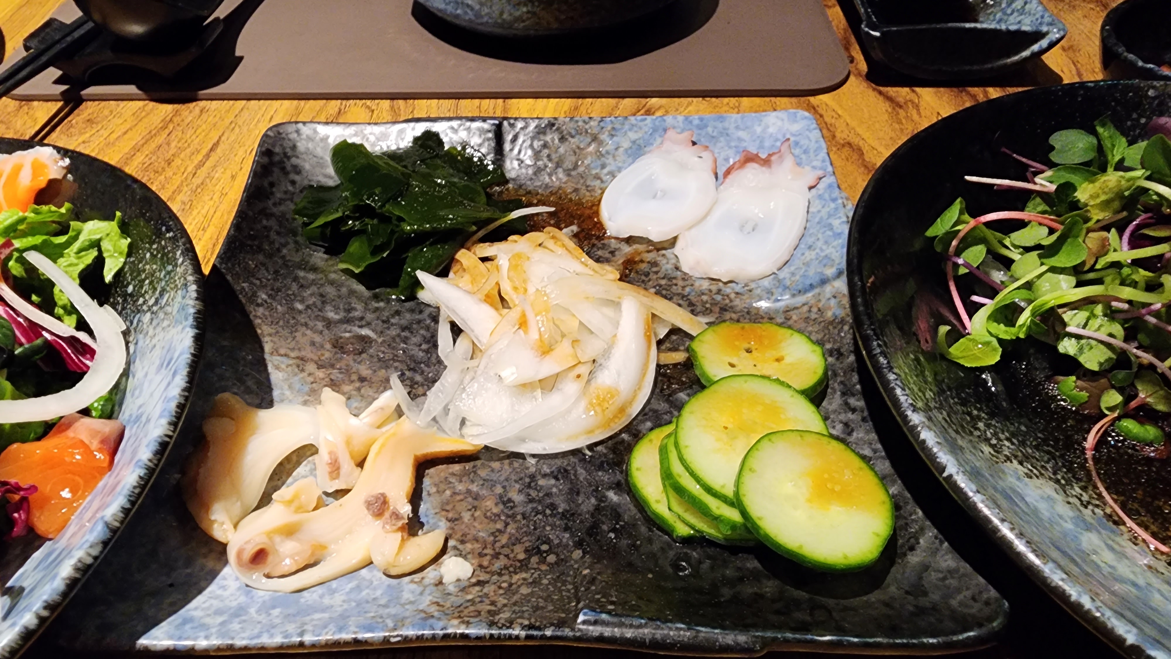 무침회, 연어샐러드, 숙성회가 나왔어요.