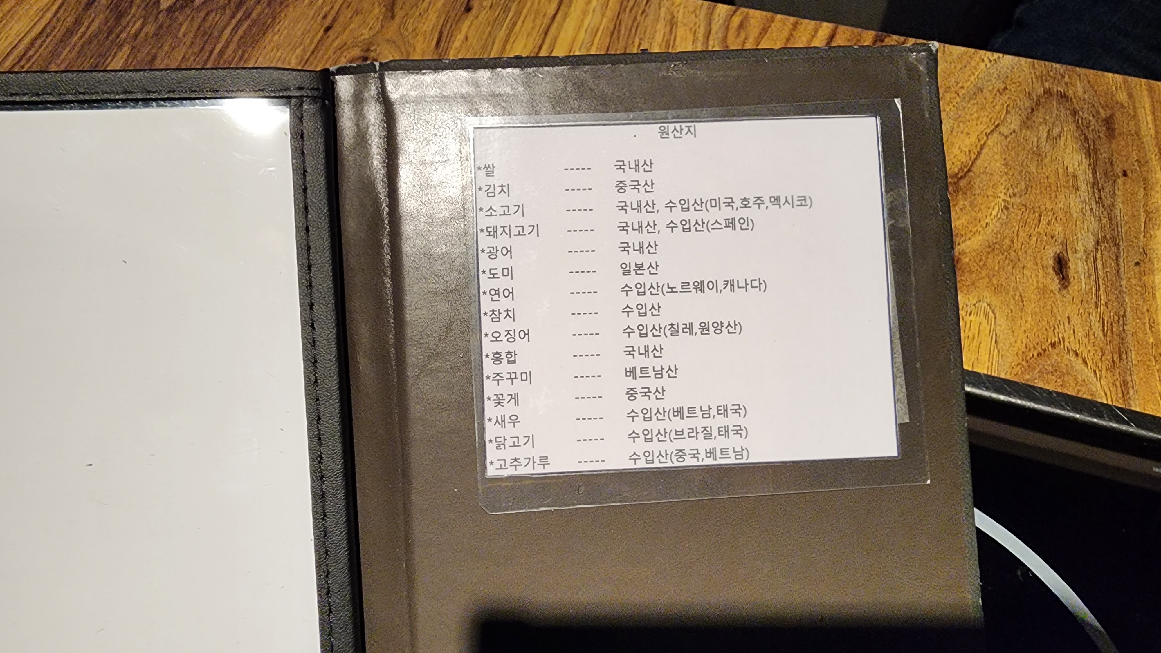원산지 꼭 챙겨보는 1인인데 메뉴판에 있어서 찍어왔어요.