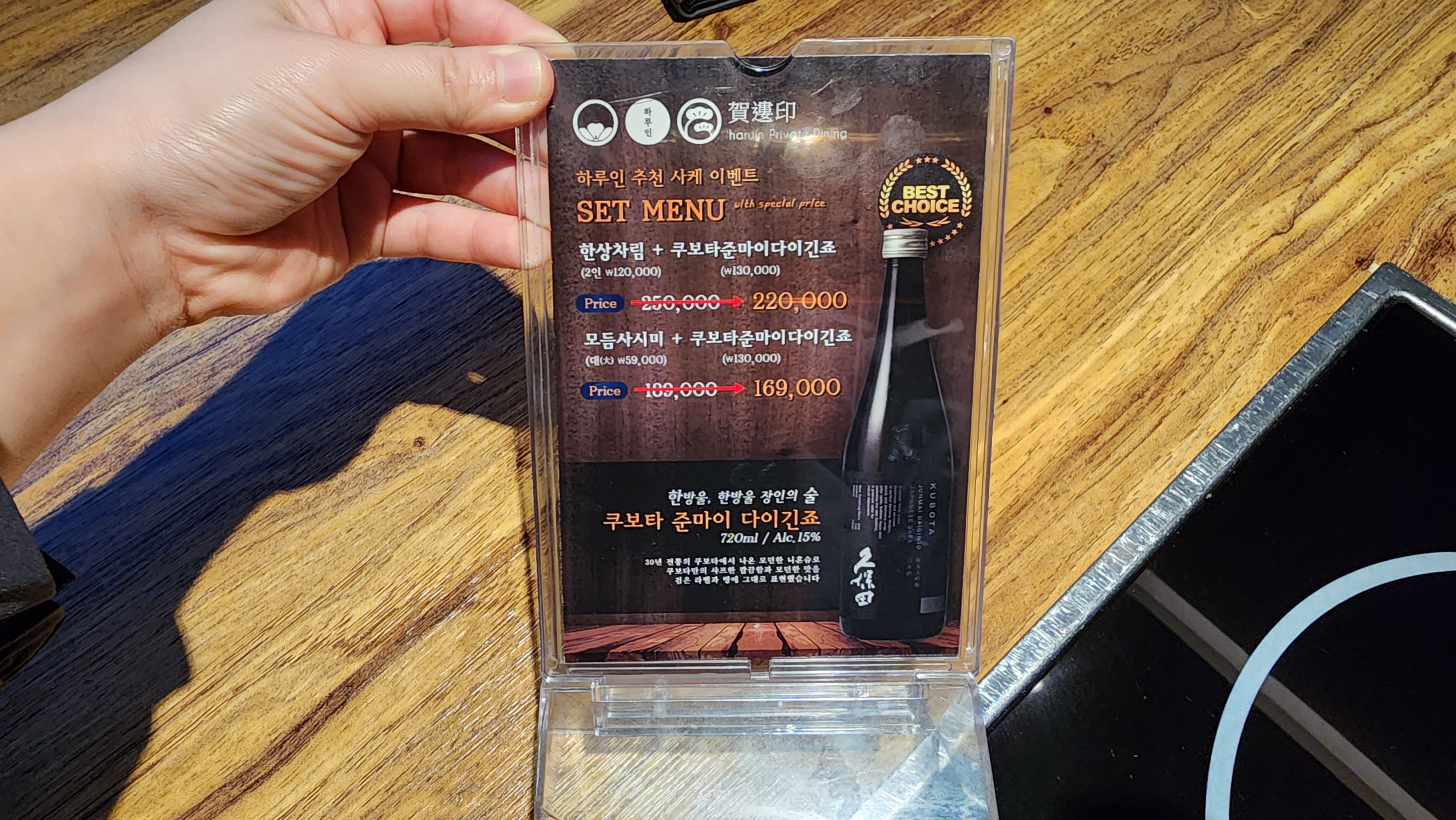 하루인 이자카야 대표메뉴는 숙성회 한상차림 이라고 해요.