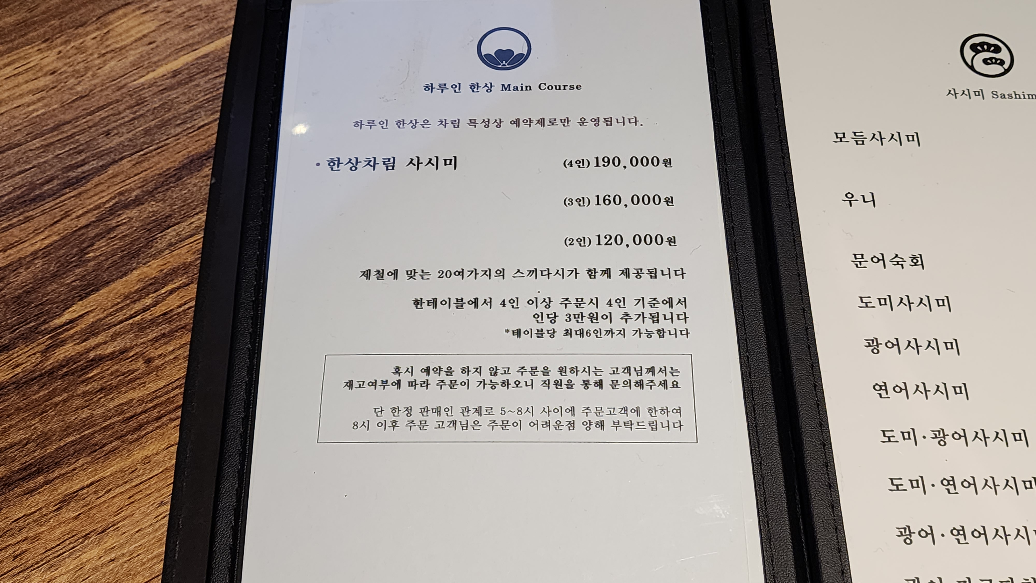 저는 한상차림 사시미 2인 이용했어요. (다양한 단품 메뉴들도 많았어요)