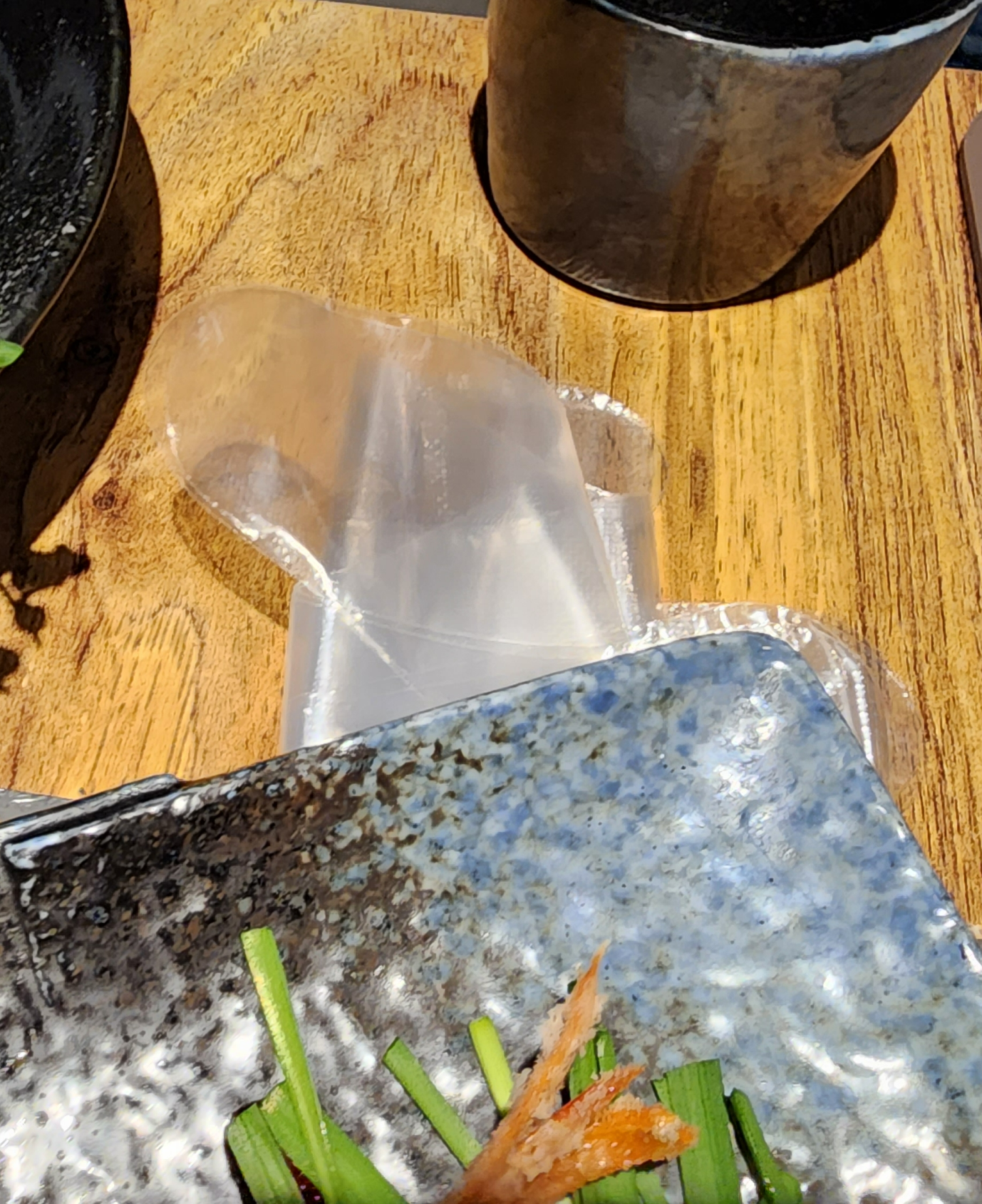 바삭바삭하게 잘 튀겨진 생선튀김은 비닐장갑으로 해체 해서 먹을 수 있도록 같이 챙겨 주더군요.