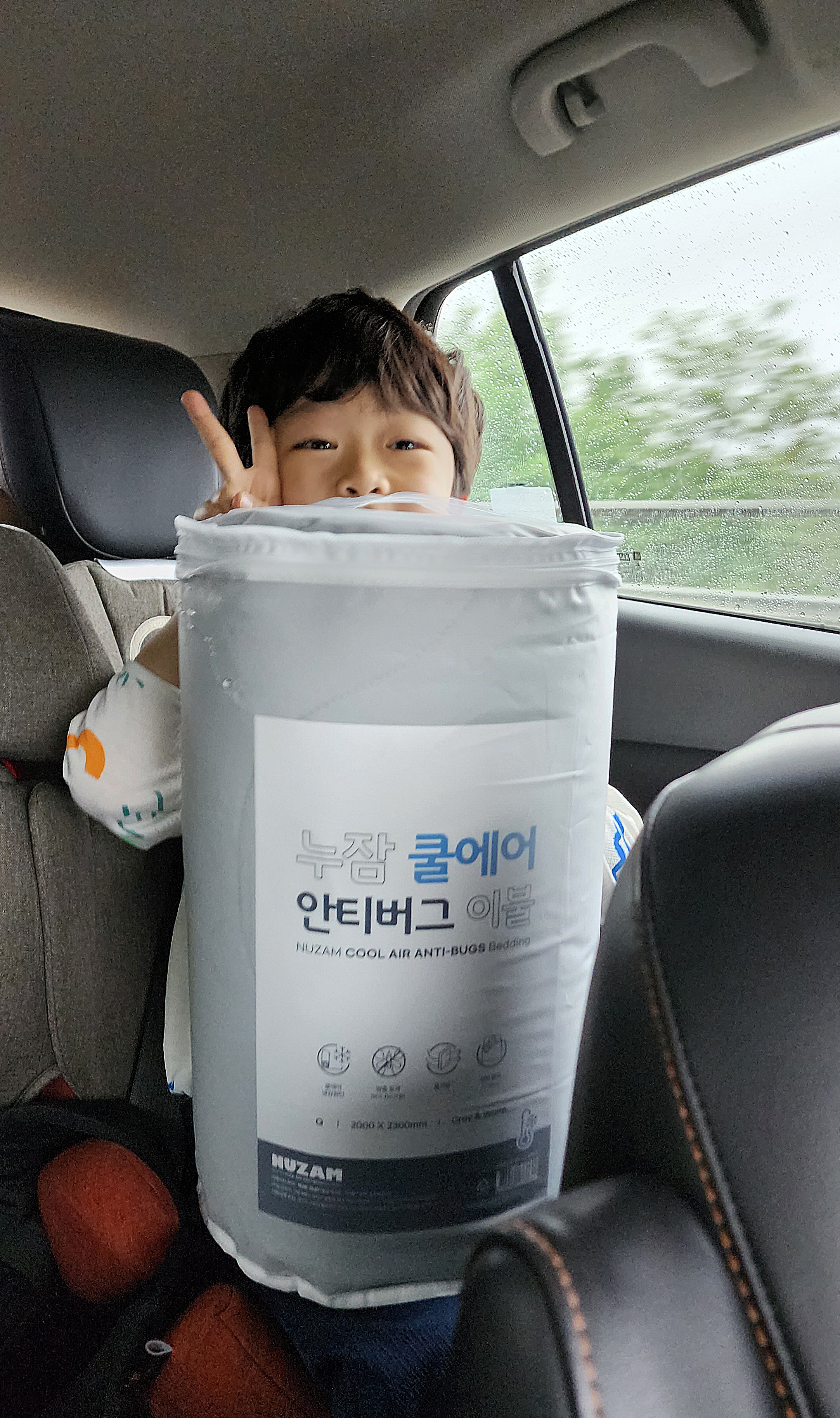 동글이가 여행갈 때도 누잠 쿨에어 이불 챙겨가겠다며 본인이 직접 들고 다녔어요.