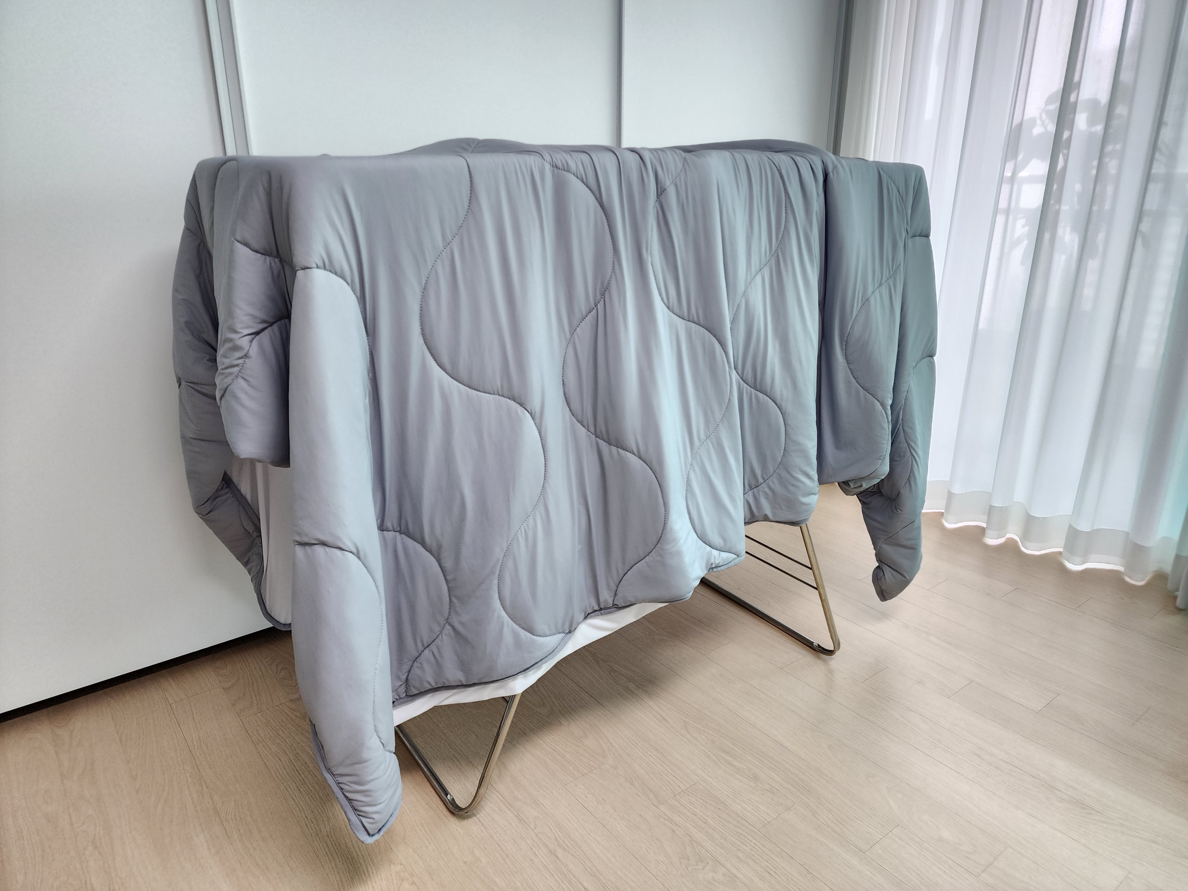 누잠 쿨에어 안티버그 이불은 스카이블루 색상과 그레이 색상이 있는데요 이번 포스팅에서 보여드릴 제품은 그레이 색상이예요.