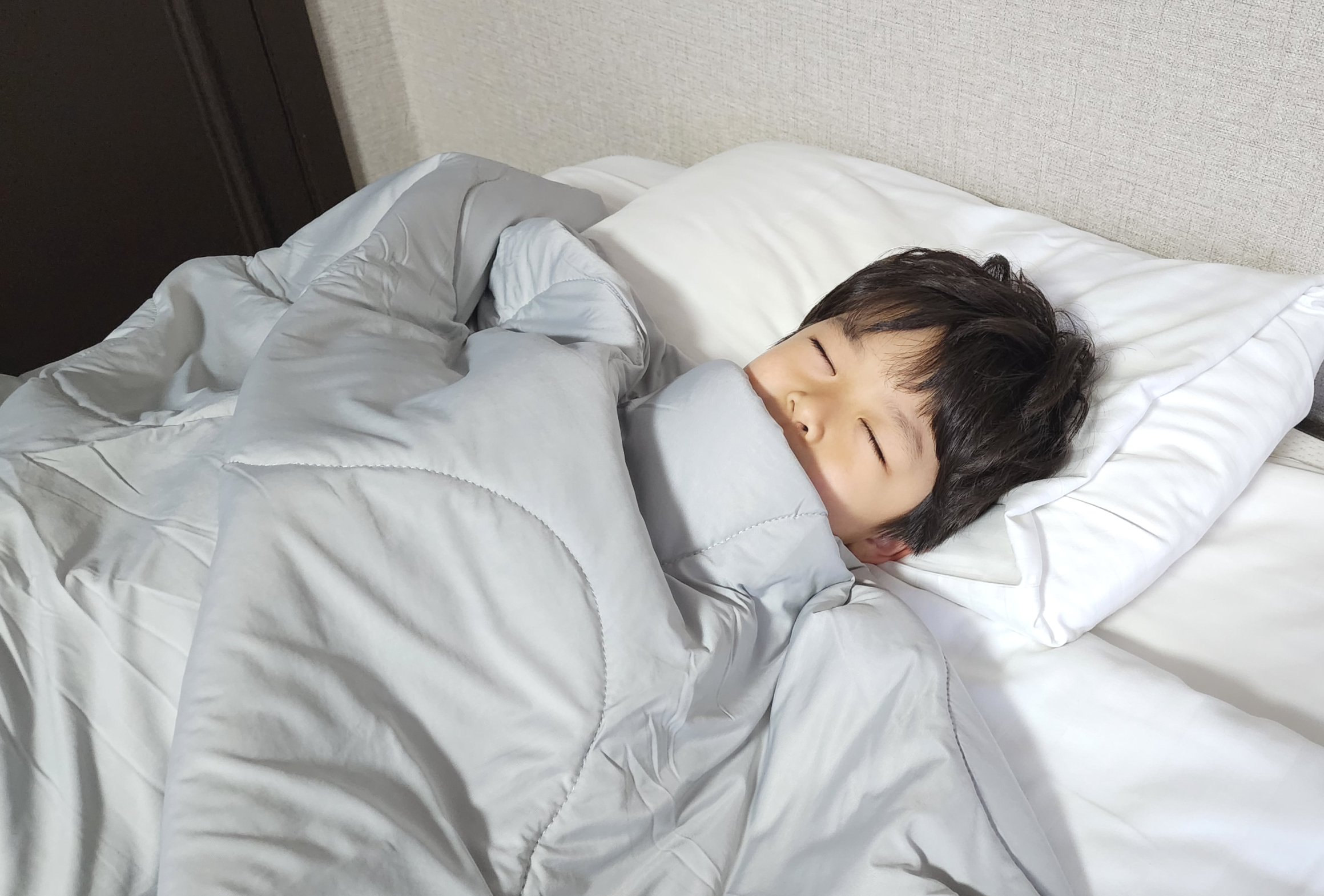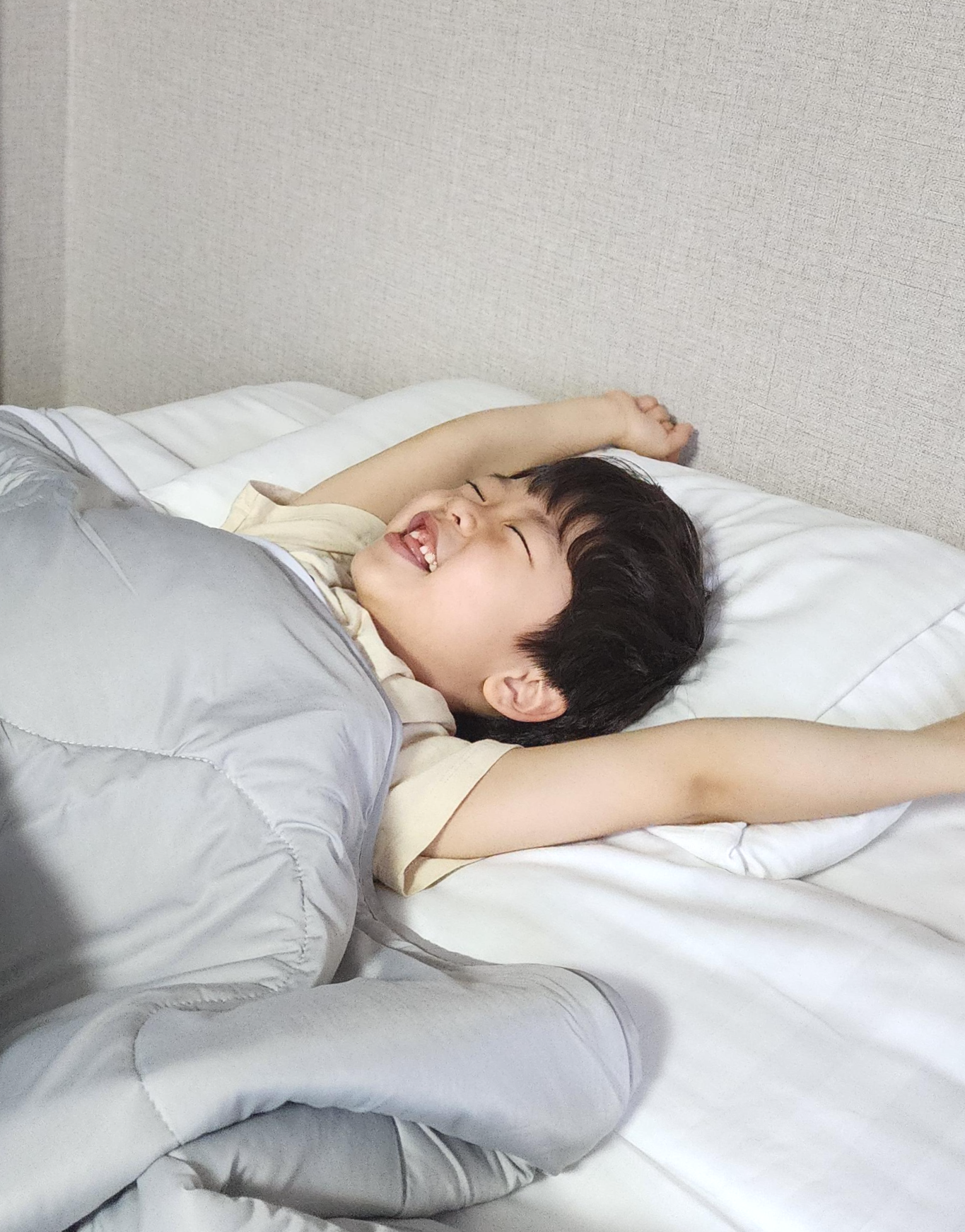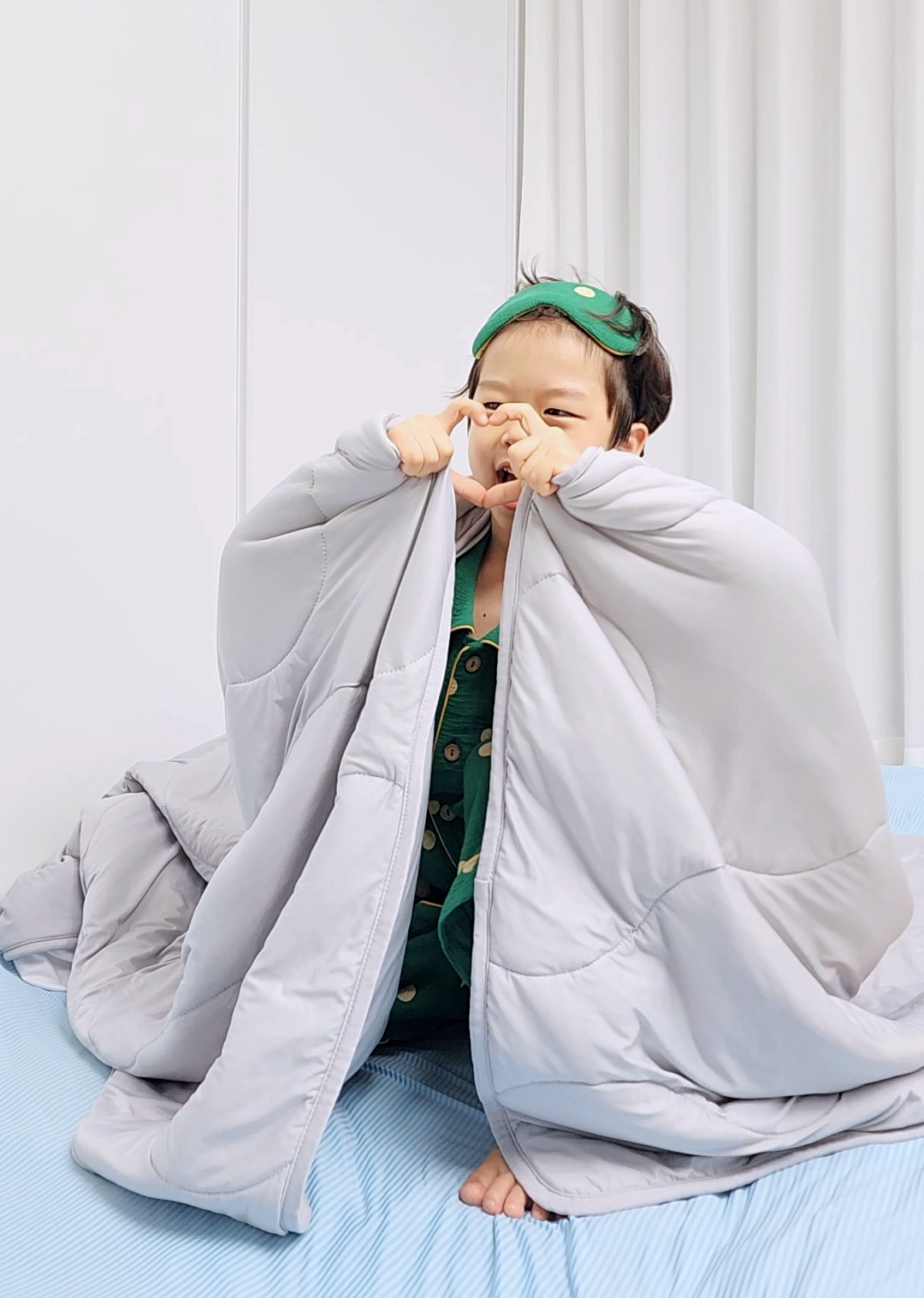 누잠 쿨에어 이불을 만나고나서 밤새 잘 덮고 숙면을 취하는걸 보고