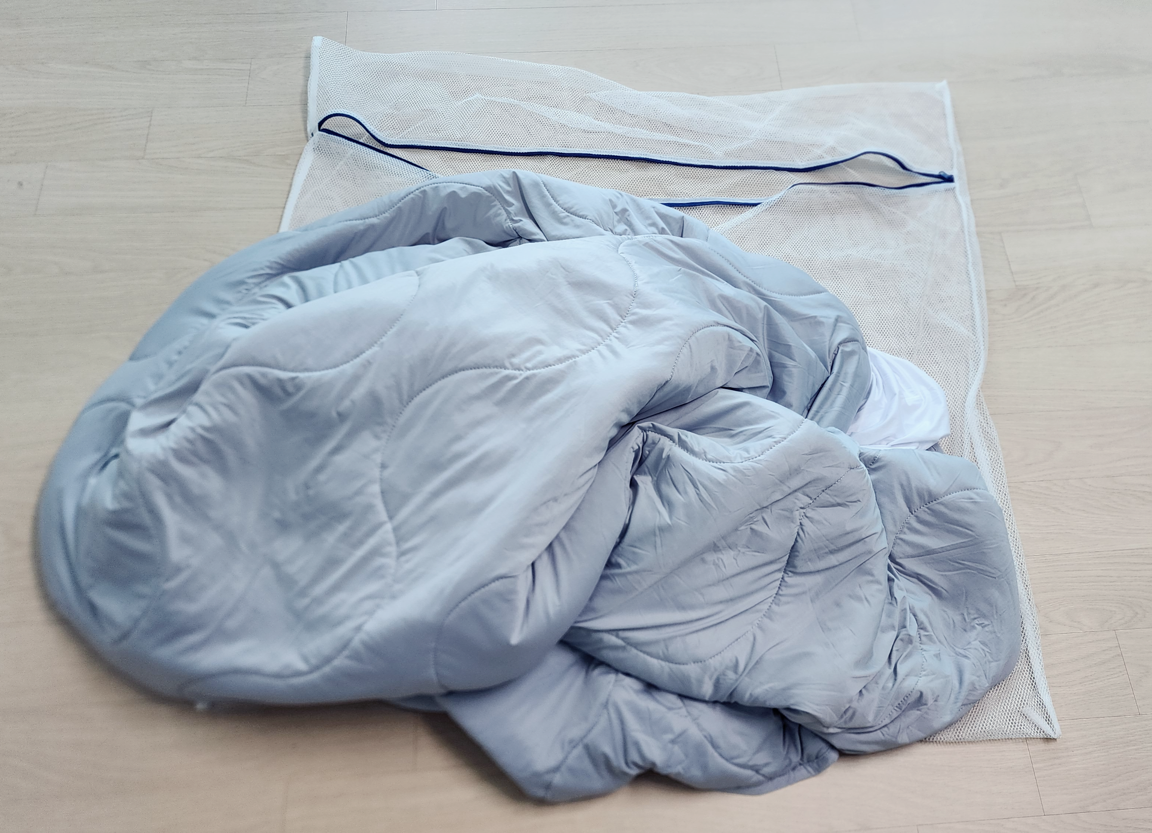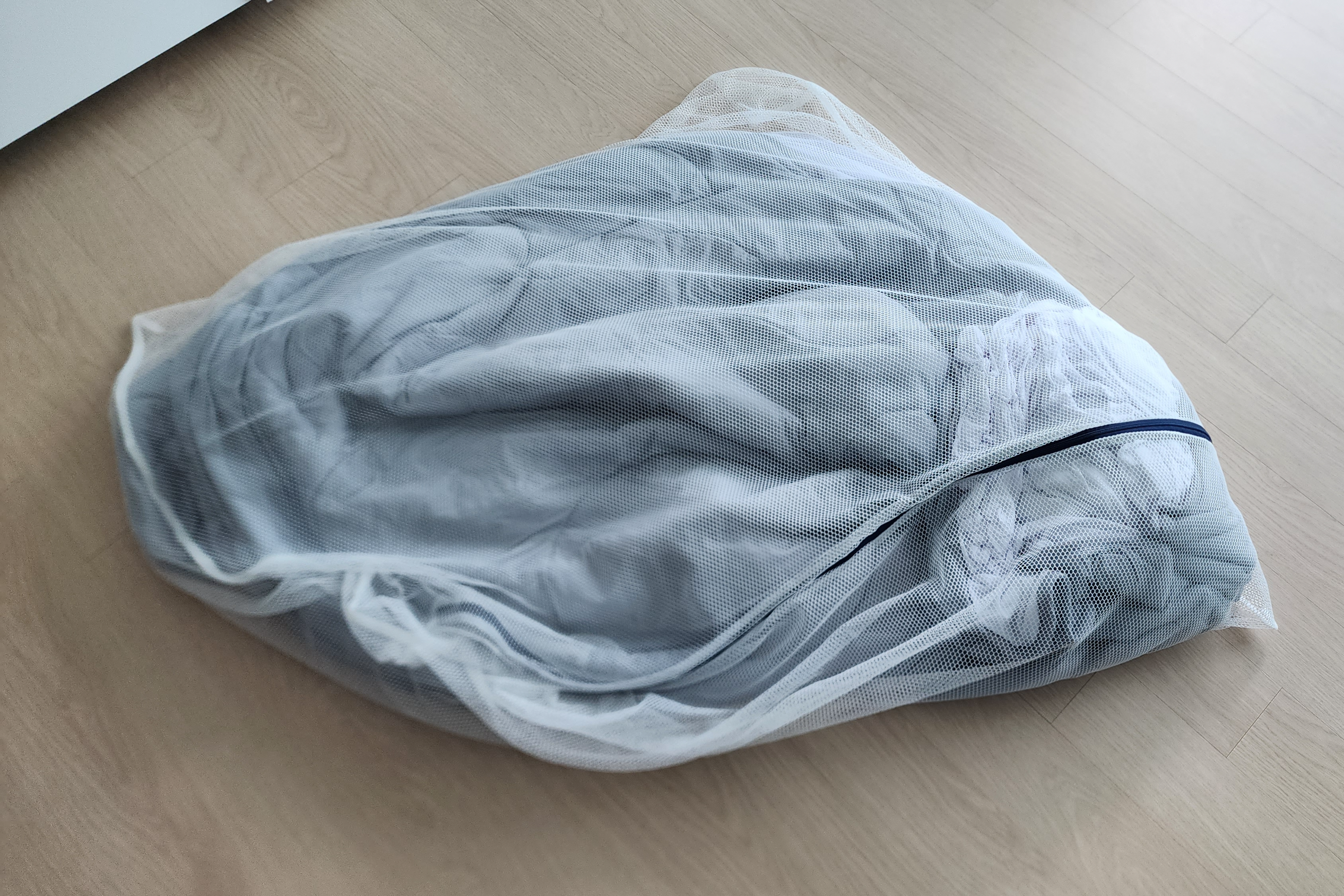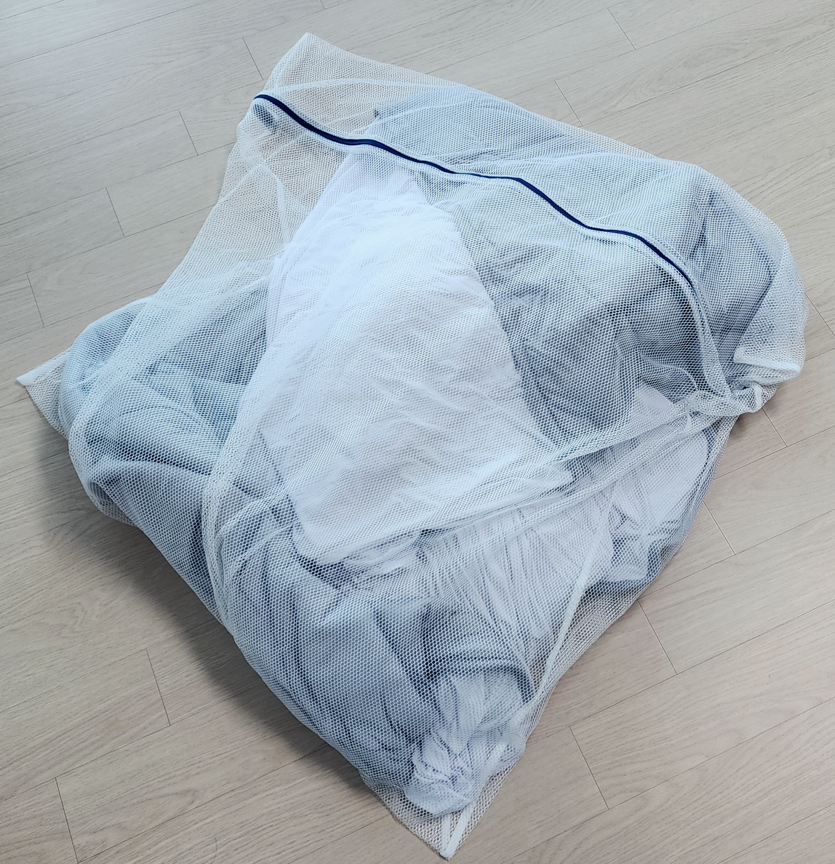 동글이는 땀이 많은 친구라 자주 이불 세탁을 해줘야하는데 함께 온 빨래망에 넣어서 세탁하면 세상 간편해요.