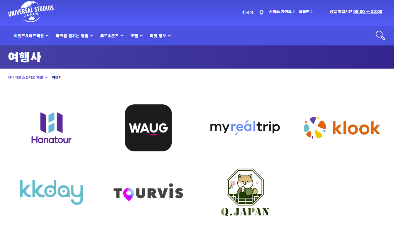 하나투어, WAUG, 마이리얼트립, 클룩, kkday, 투어비스, Q.JAPAN 이렇게 다섯곳에서 USJ 티켓을 판매 중이예요.