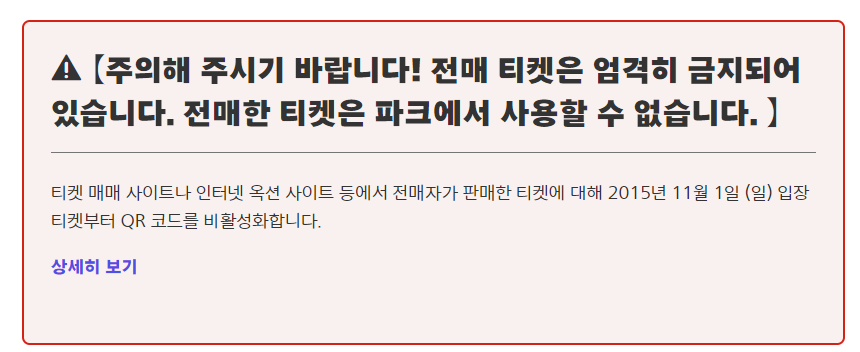 이 외에서 판매하는 티켓은 전매티켓이라고 해서 사용할 수 없다고 언급되어있어요.