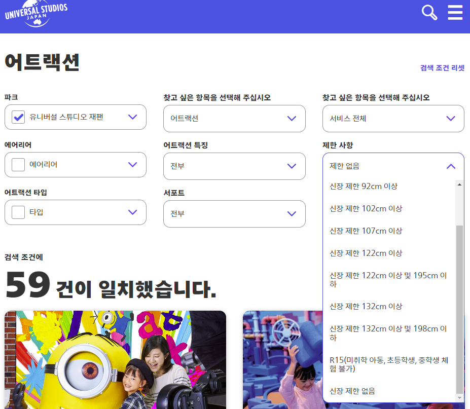 USJ는 어트랙션마다 신장 제한이 있어요.