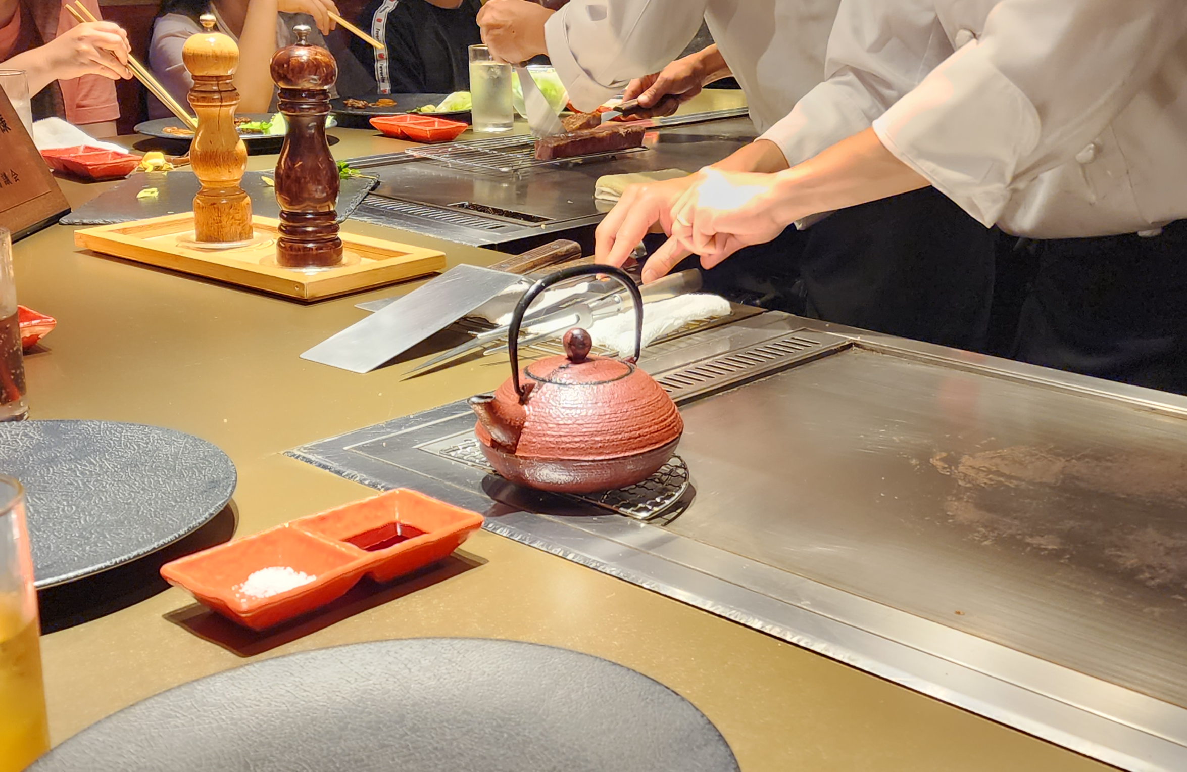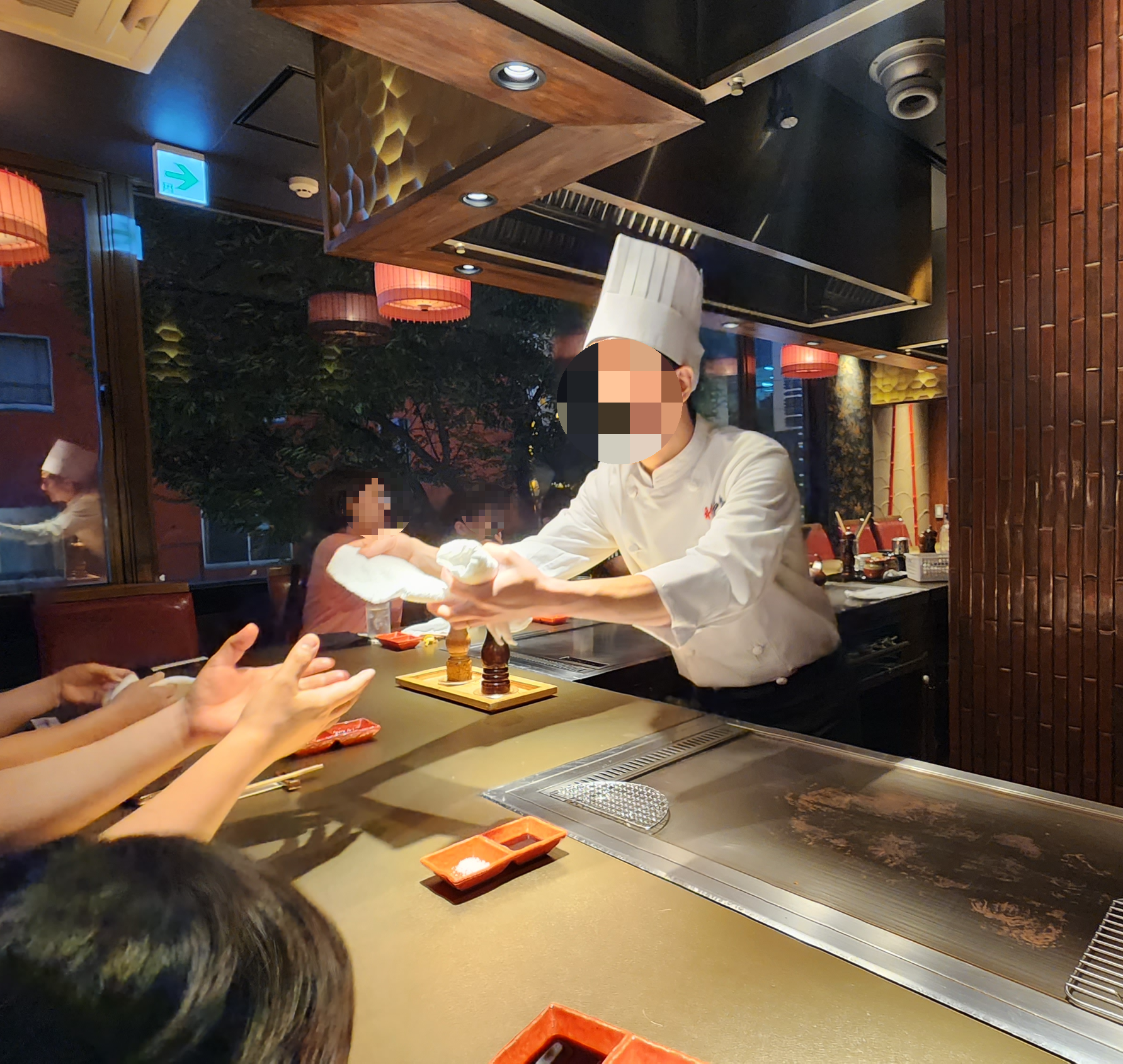 철판요리가 시작 되기 전 고기 상태도 체크하고 사진도 찍으라며 보여주는데 어느새 상도 쓰윽 밀어주시며 사진 촬영을 도와주시더라고요.