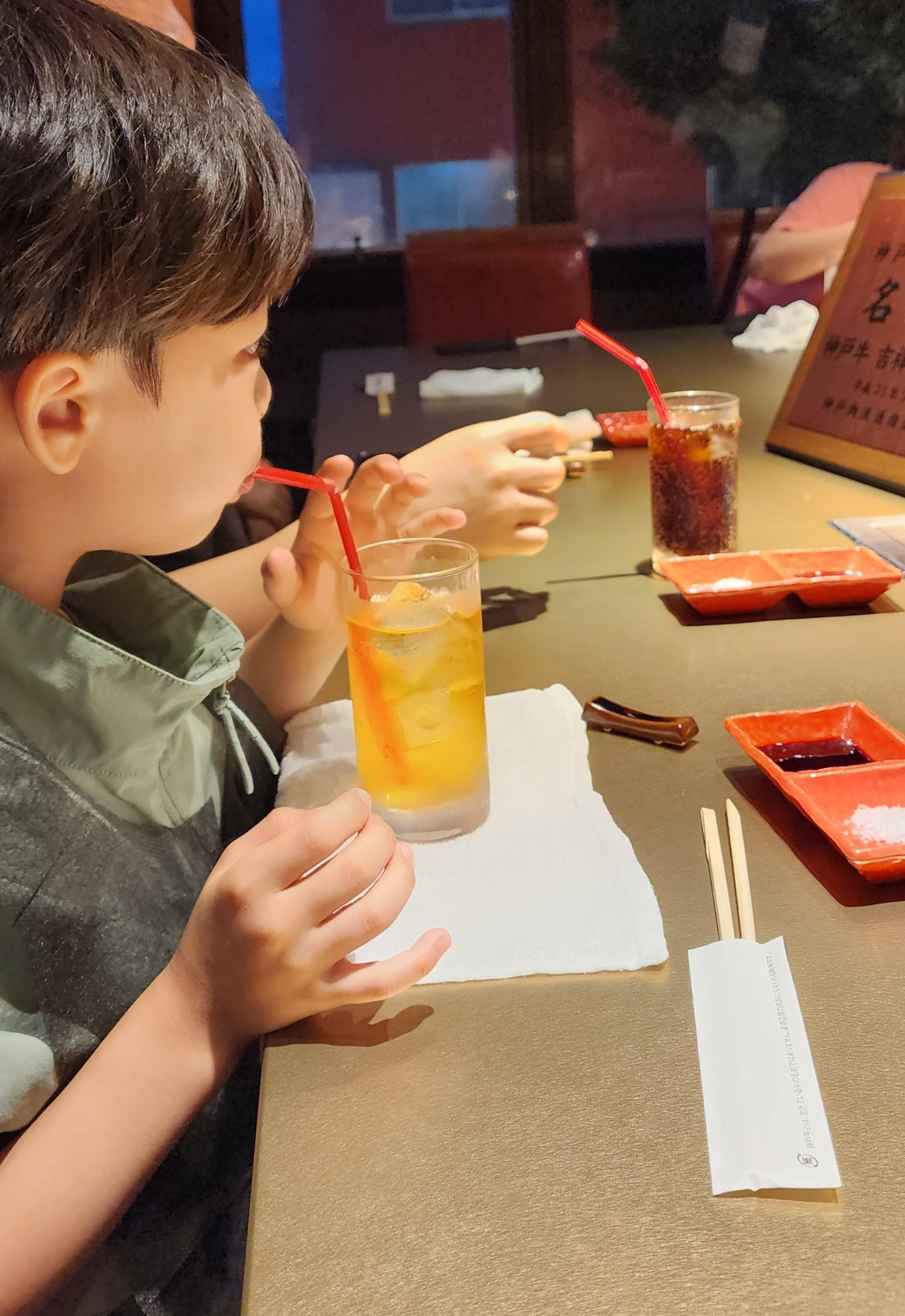 동글이는 사과주스를 시키고 동글아빠는 콜라를 주문했고요 저랑 어머니는 땀을 너무 많이 흘렸던 상태라 물을 주문했는데 이상하게도 물은 가격이 없는거예요.(일본인데.. 물을 공짜로 준다고? 고급 요리집이라 서비스가 좋았던걸로요)