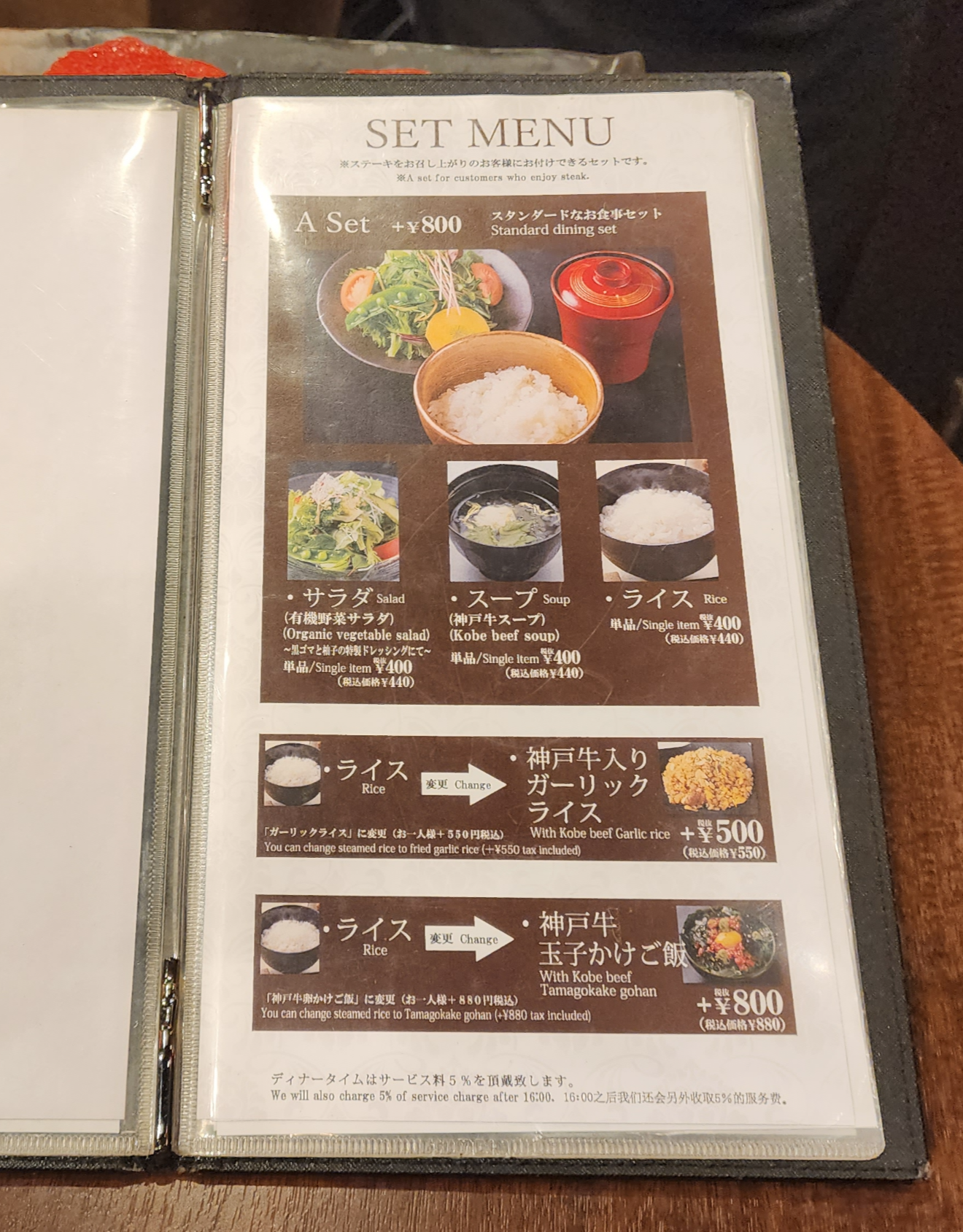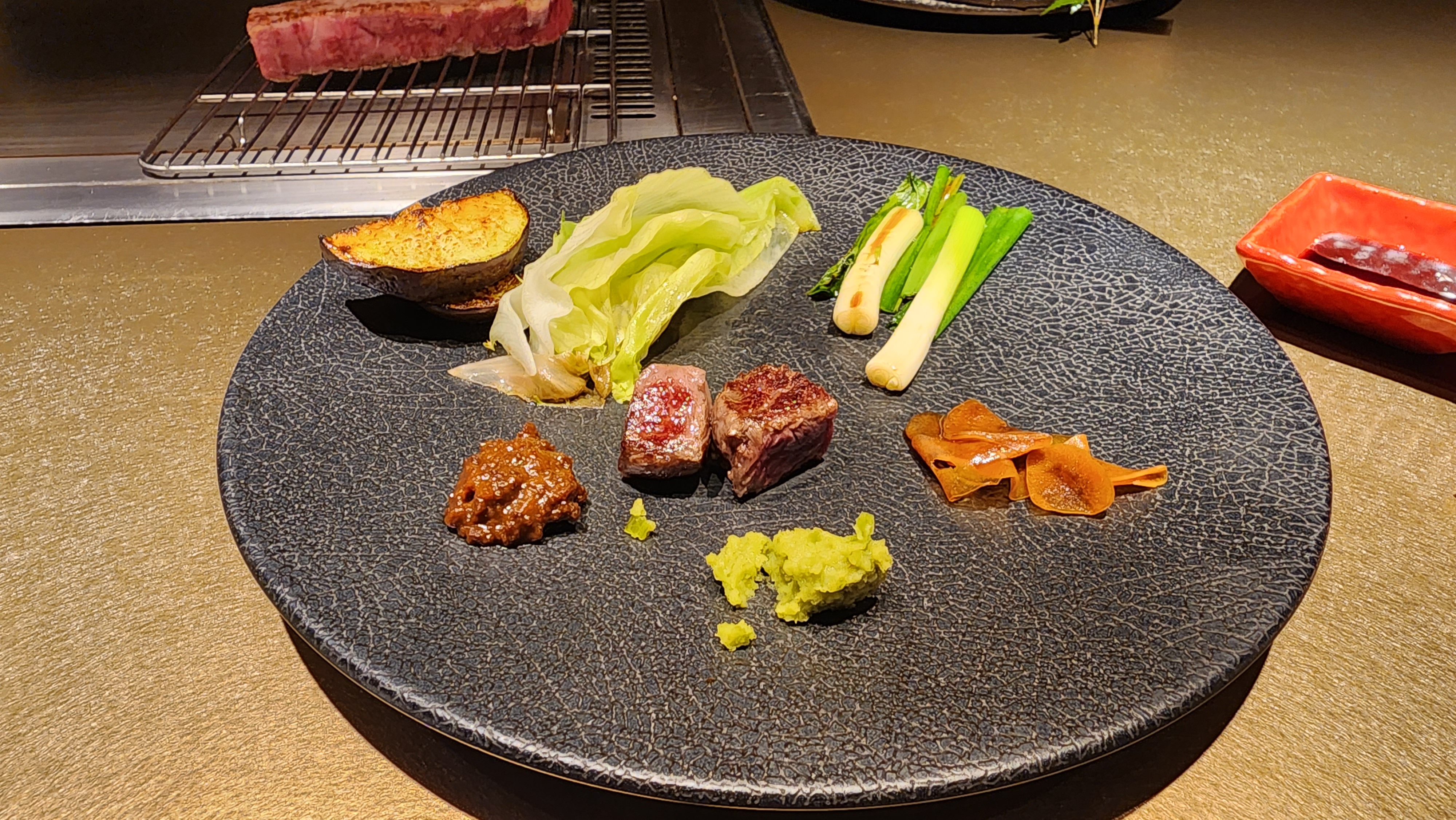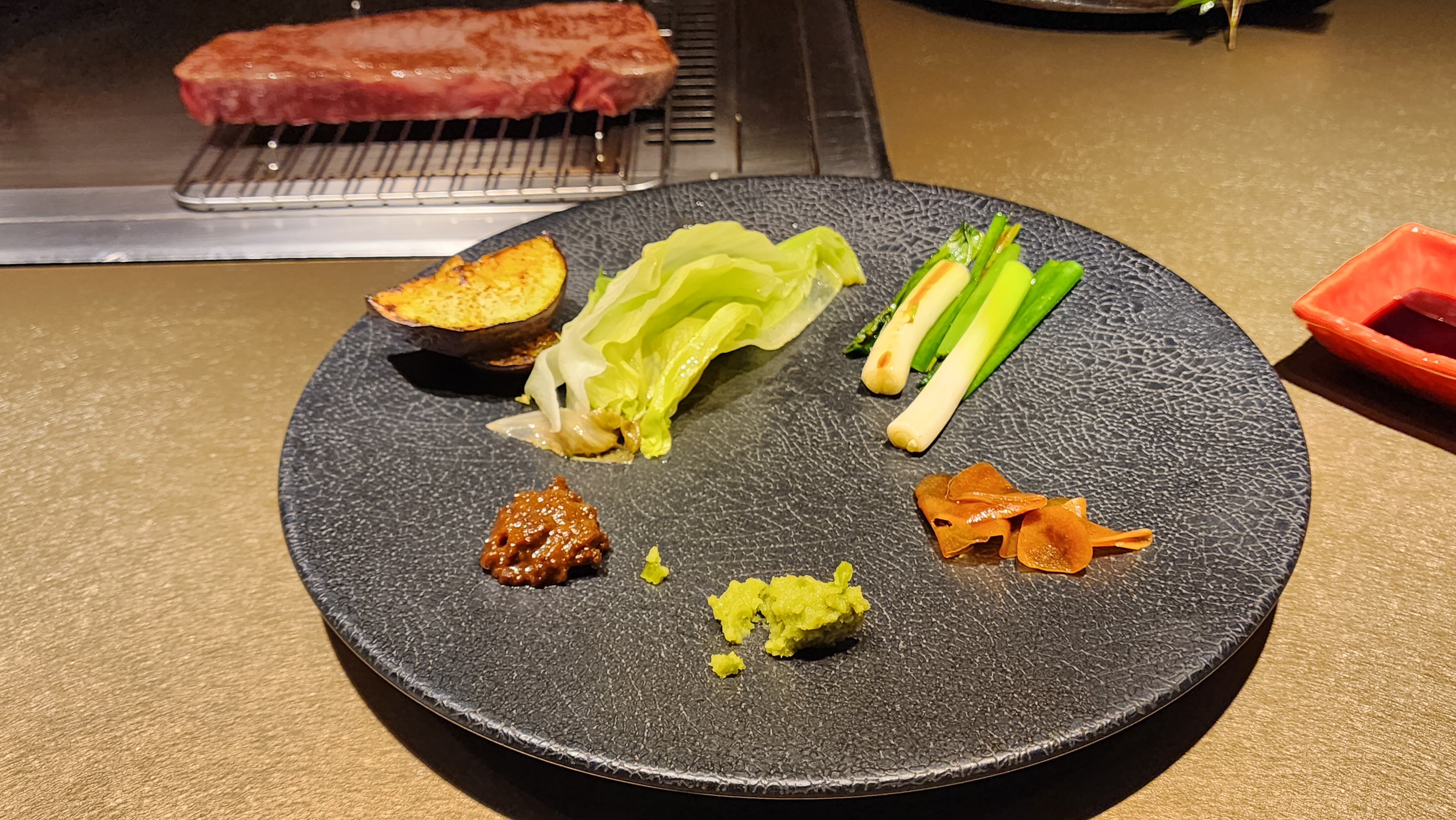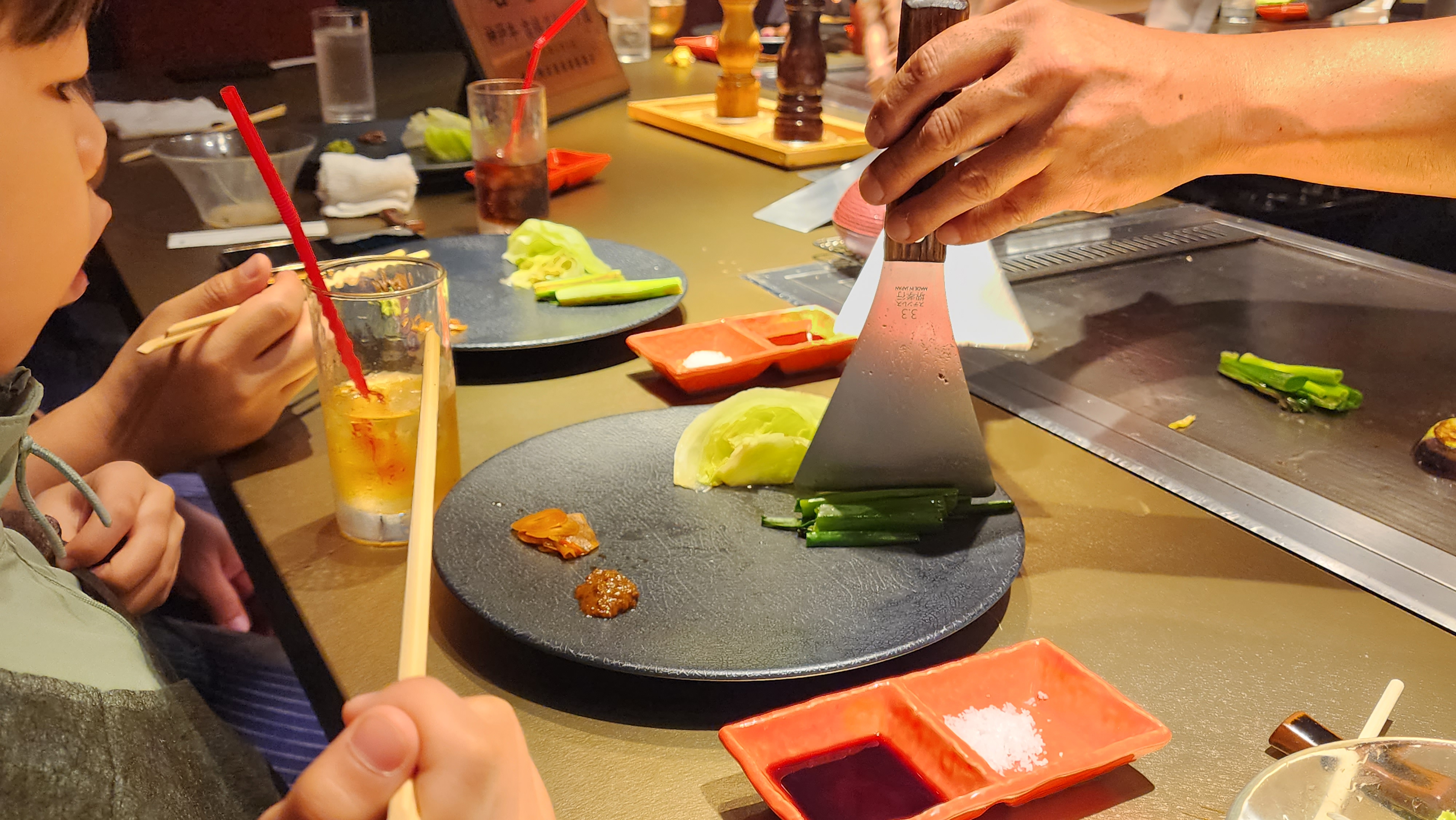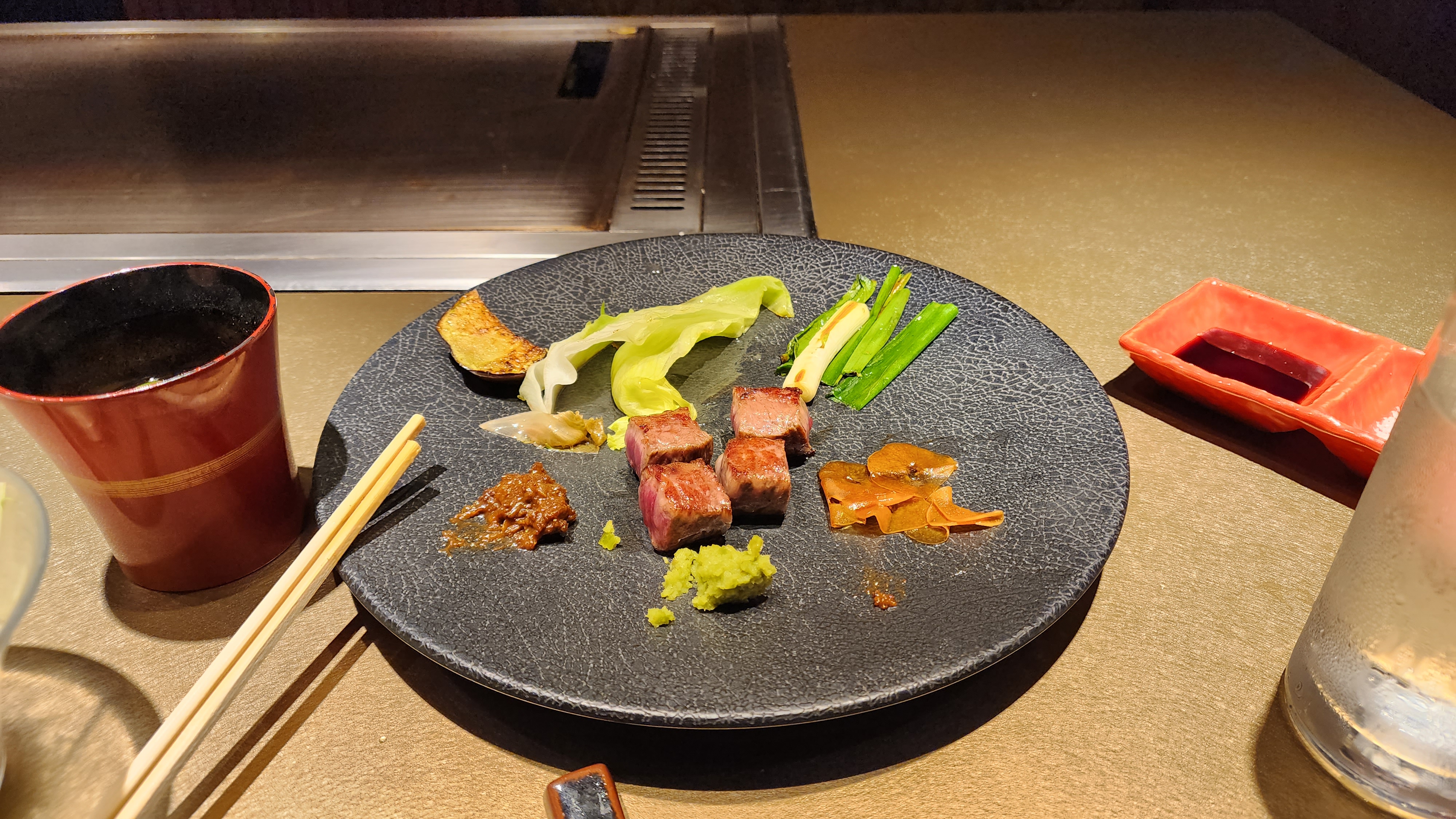 우리나라에서도 철판요리집은 가격이 좀 있는데 물 한잔도 돈 받고 판다는 일본이니까, 고기 말고 다른 것들은 계속 추가해서 먹어야겠지? 하고 막연하게 생각했던 것 같아요.