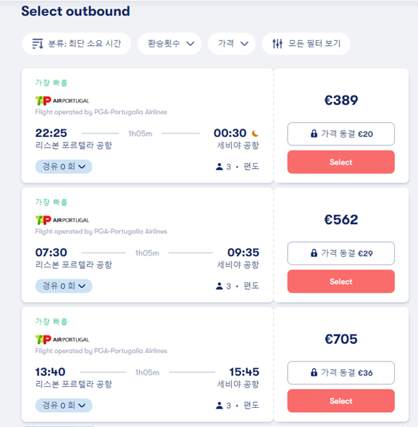 [ 유럽 저가항공 ] 오미오 어플로 에어포르투갈 항공 예약하기(리스본에서 세비야 이동) 본문