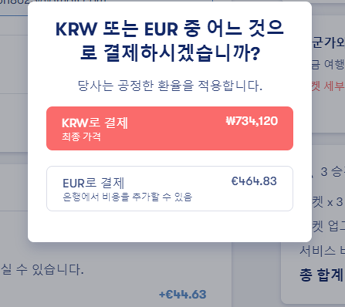 카드로 결제할 때 환율 수수료 더 부가될 수 있으니 원화 말고 유로로 결제하셔요.
