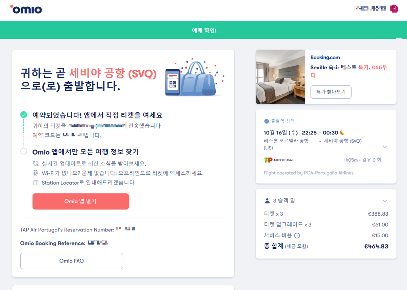[ 유럽 저가항공 ] 오미오 어플로 에어포르투갈 항공 예약하기(리스본에서 세비야 이동) 본문