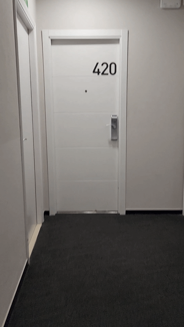 420호에 배정 되었고, 카드키를 열고 들어가면 싱글 침대가 2개 있고 복도쪽에 화장실과 샤워실이 있어요.