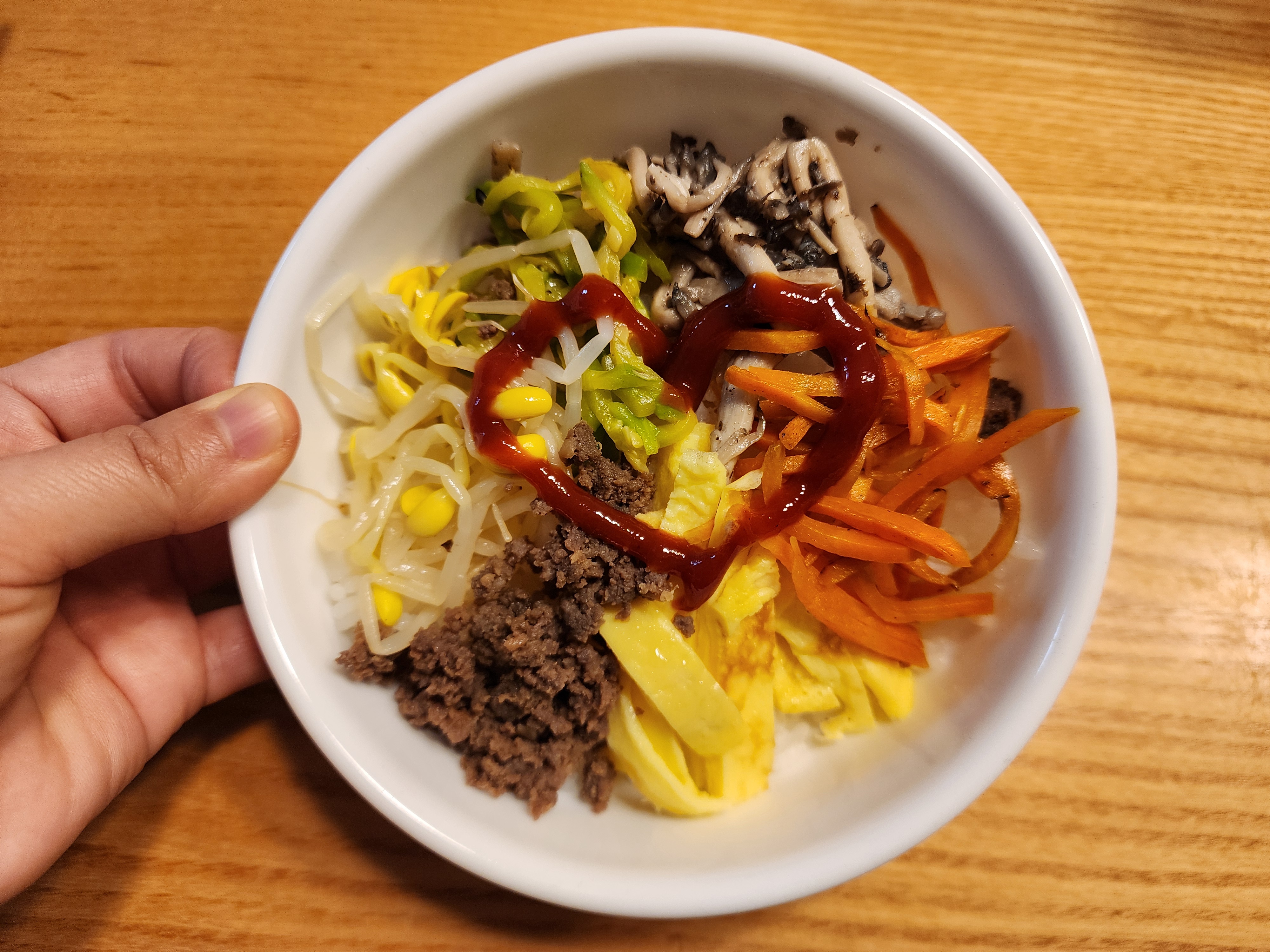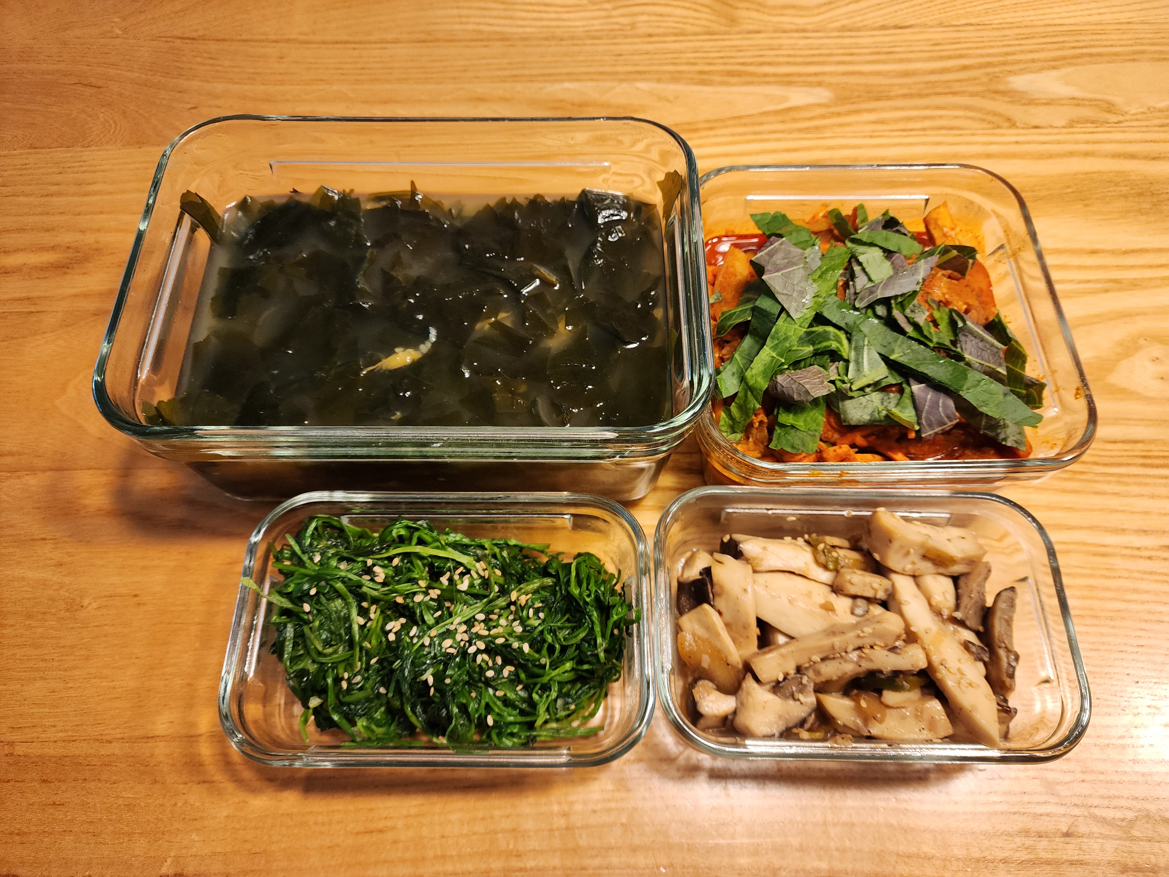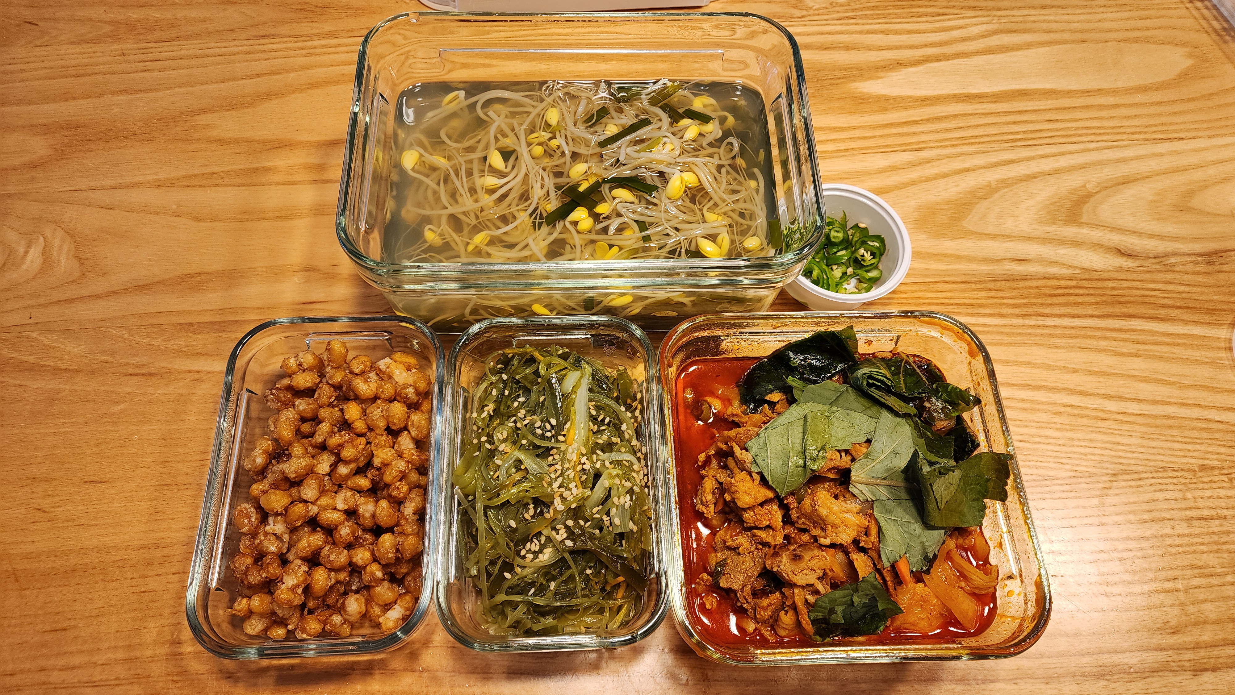 이번에 왔던 반찬은 비빔밥용 오색나물에 고추장이 더 곁들여 왔고, 고깃집 된장찌개에 넣어먹으라고 고추도 따로 보내주셨더라구요.