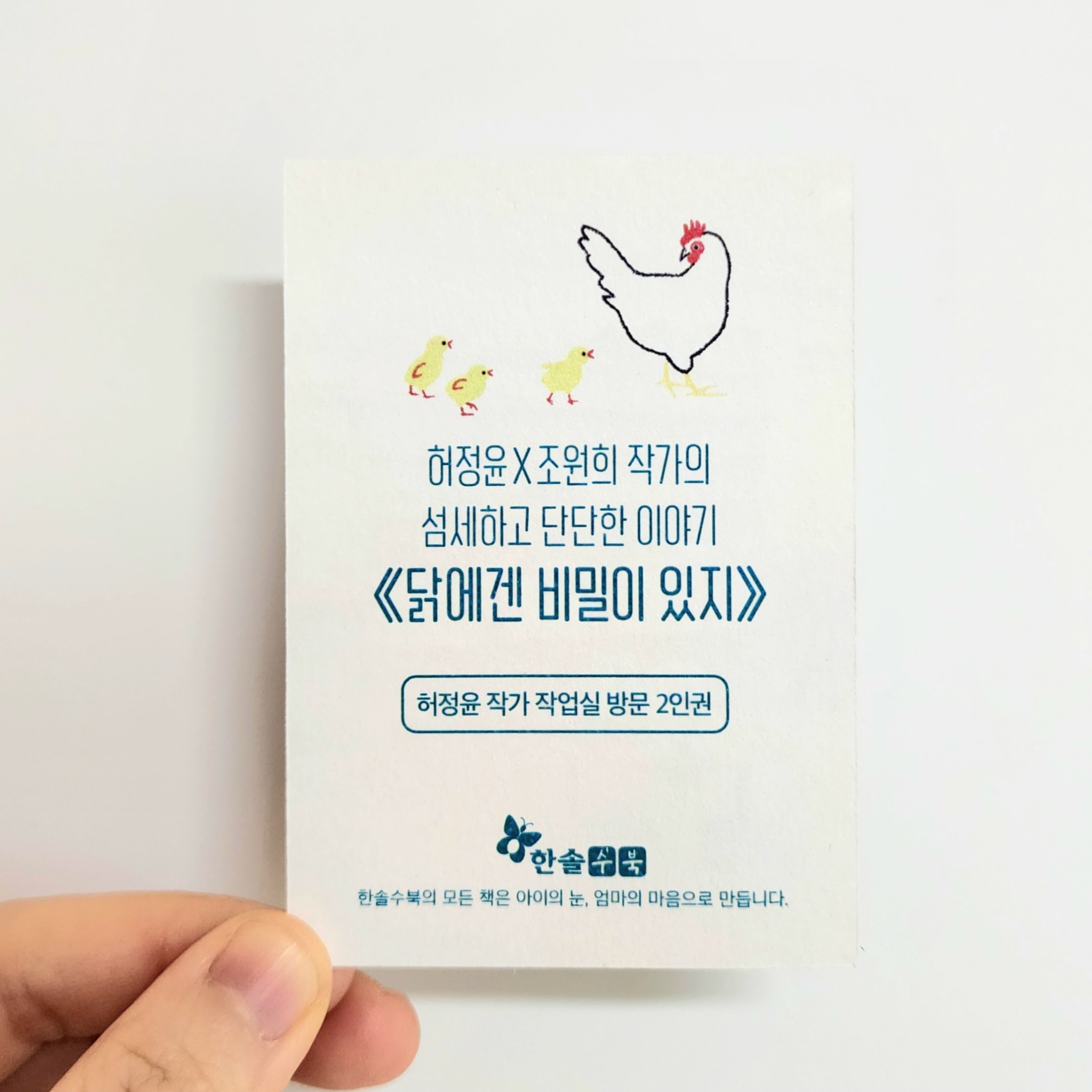 허정윤×조원희 작가의동물 복지 그림책우리가 미처 생각하지 못했던 닭의 비밀은?그림책 『아빠를 빌려줘』,『손을 내밀었다』에 이어 허정윤, 조원희 작가가 다시 만났어요. 이번에는 우리