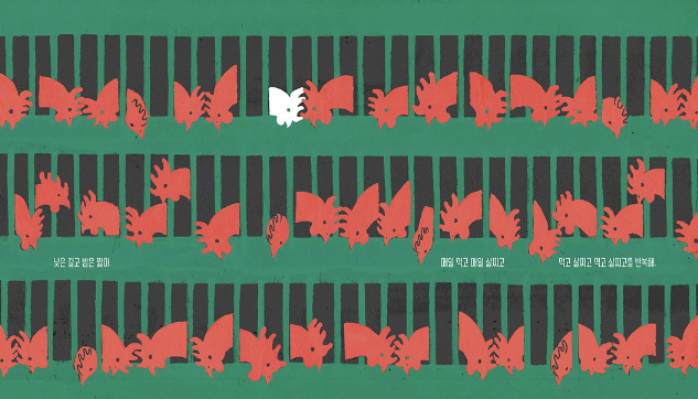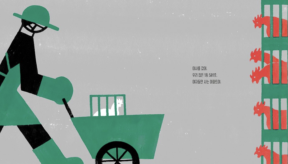 아주 열악한 4번 환경에서 살아가는 닭에 대한 이야기가 그림책에 담겨있어요.