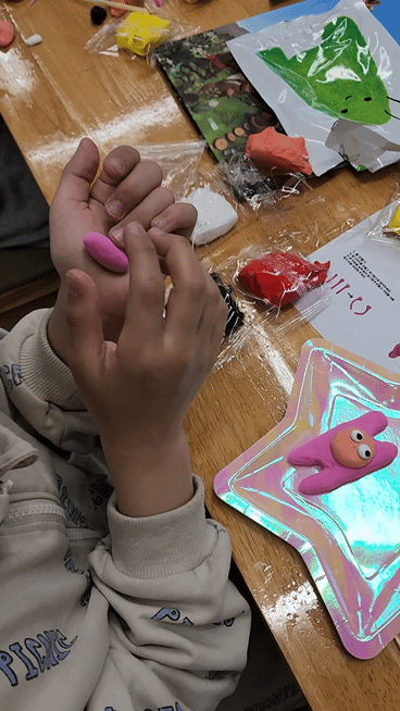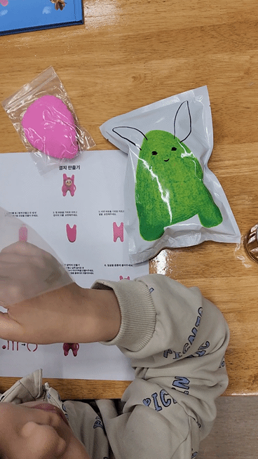 그림책을 읽어본 후에는 그림책 주인공 껌지를 만드는 시간을 가졌는데요, 껌지 한개만 만드는게 아니라 두개를 만들어서 친한 친구에게 선물할 수 있도록 기획되어 더 의미가 있었답니다.