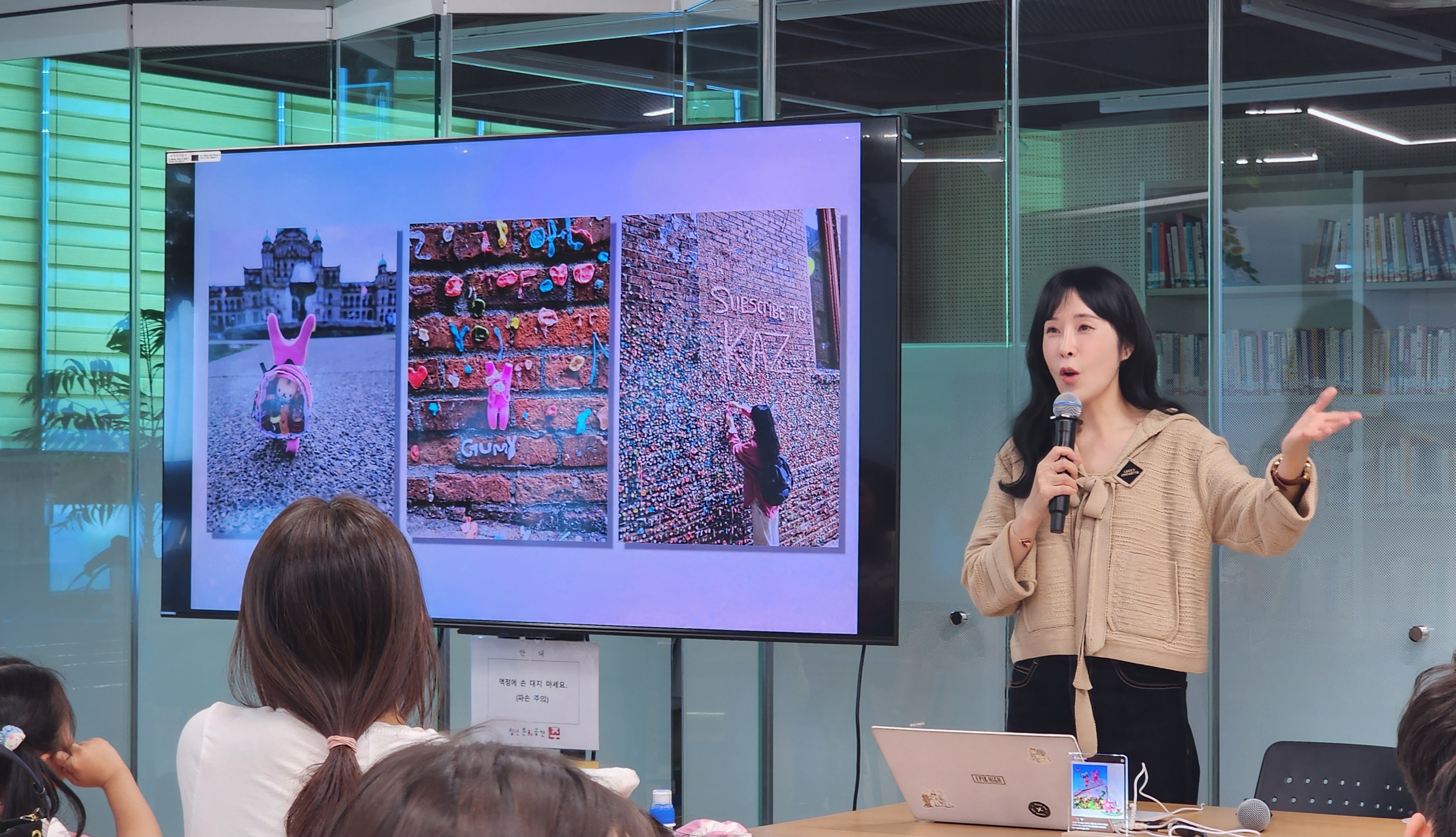 작가님의 언니가 살고 있는 캐나다에 그림책 주인공인 껌지를 데려가 껌벽을 찾아간 이야기도 들려주셨어요