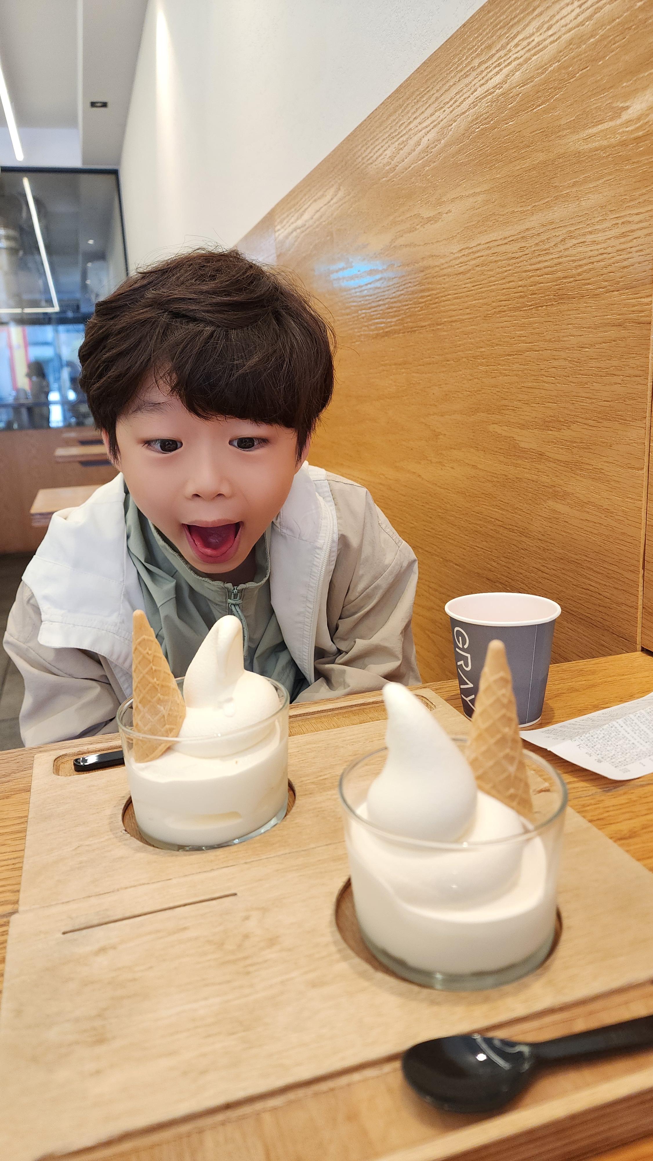 말씀드리니까 아이 먹으라며 조금 더 주셔서 아이스크림을 콘에 찍어 바닥까지 싹싹 긁어먹고 나왔네요.