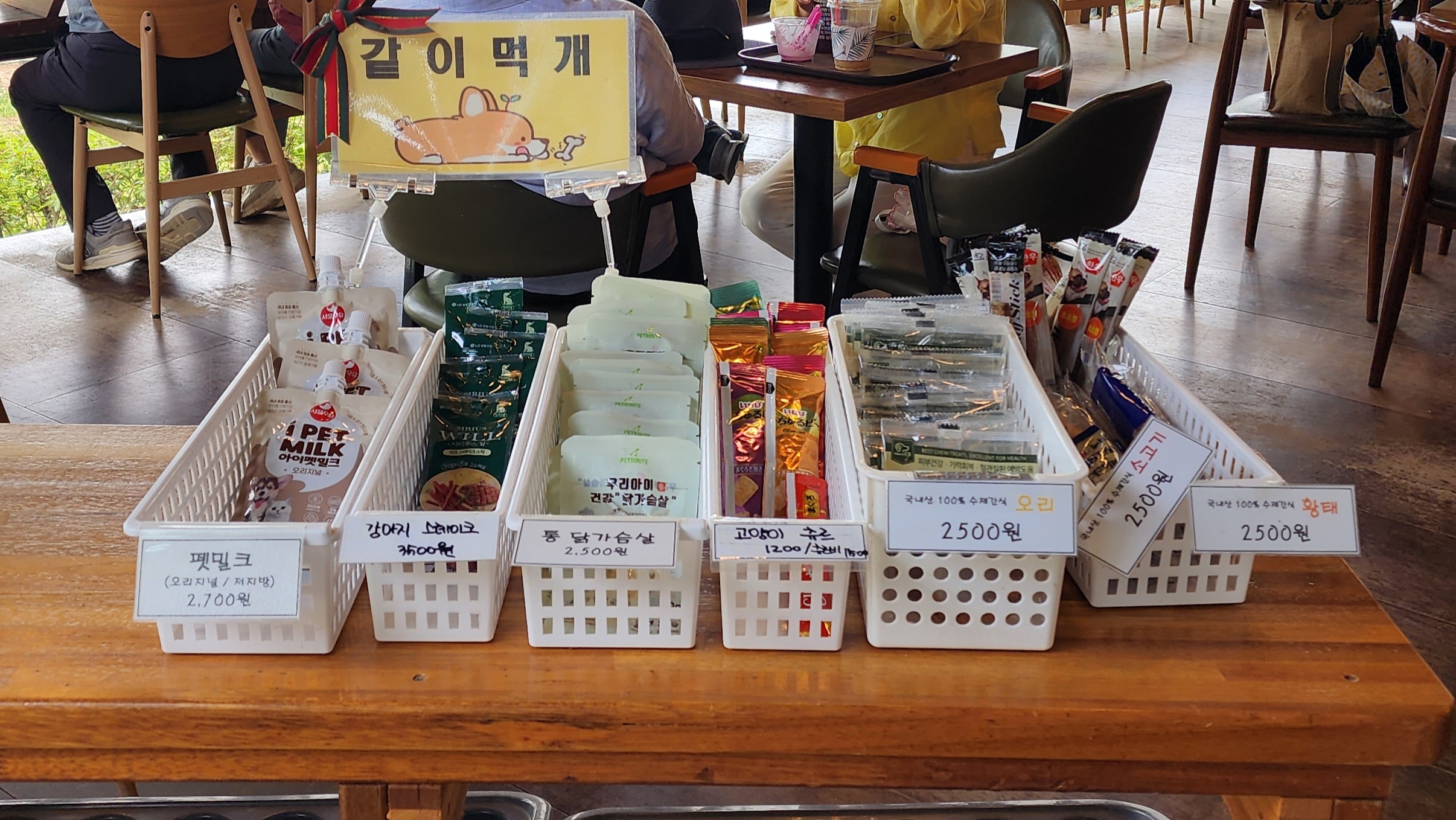 반려동물 동반이 가능한데 반려동물 간식도 판매하고있어서 인상적이었어요.