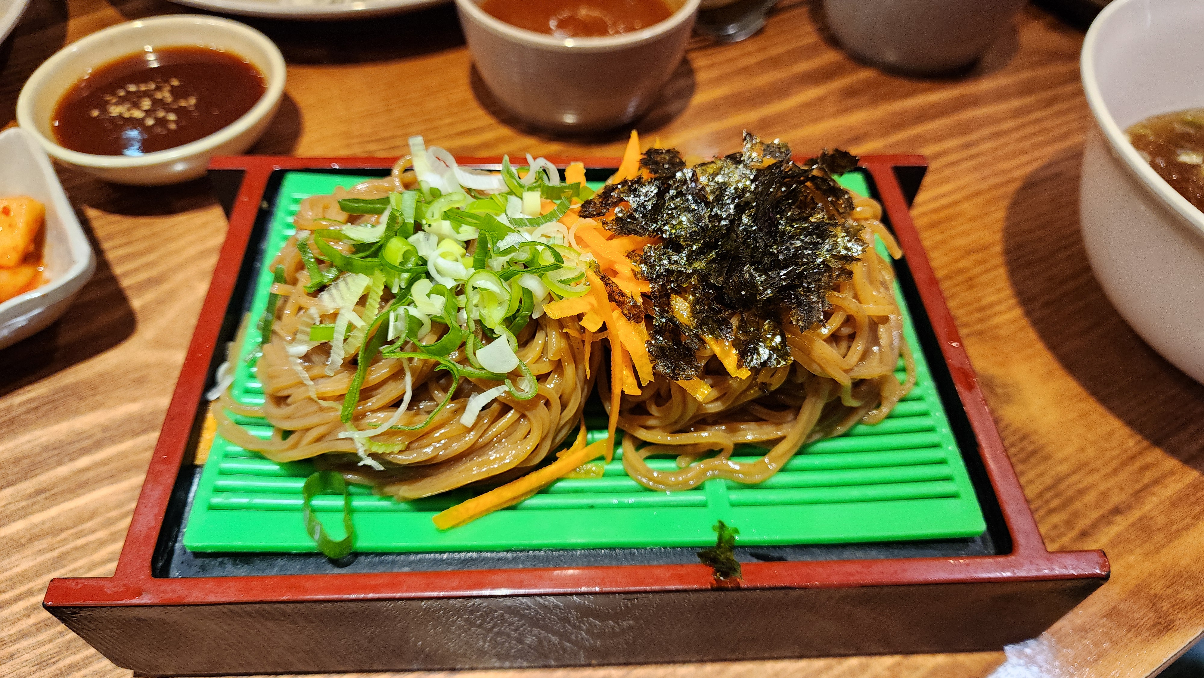 판모밀 면 위에 파와 김가루가 올라간건 다른 곳도 종종 있는데 당근채가 올려져 있어서 신기했네요.
