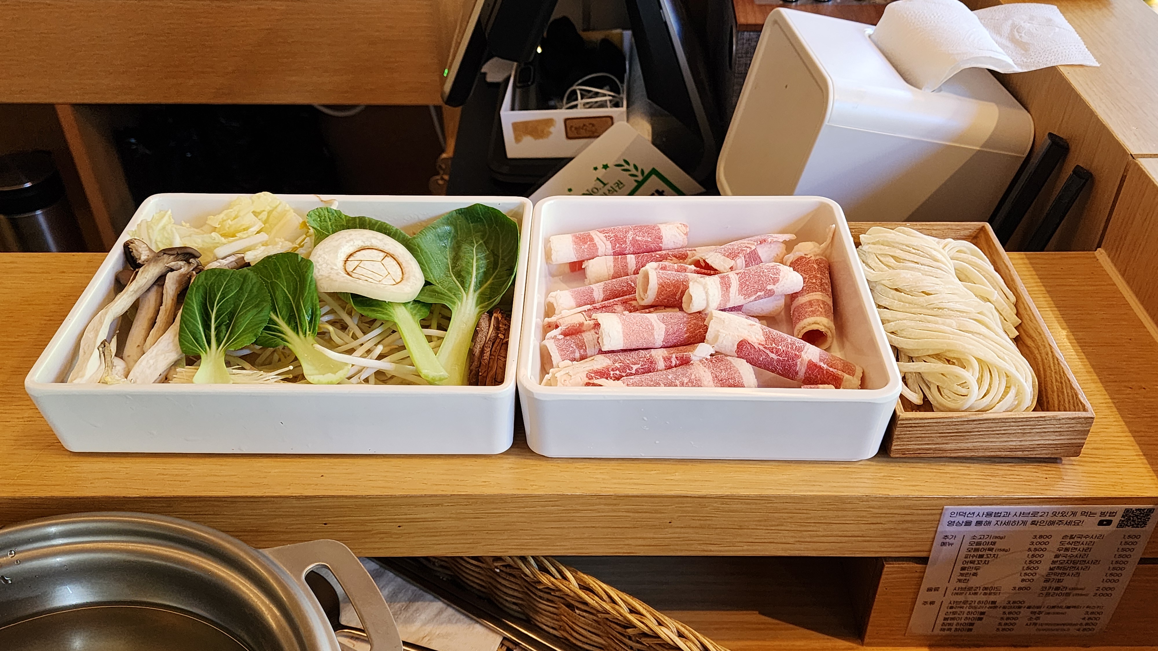제가 추가했던 손칼국수 사리까지 셋팅 되었어요.
