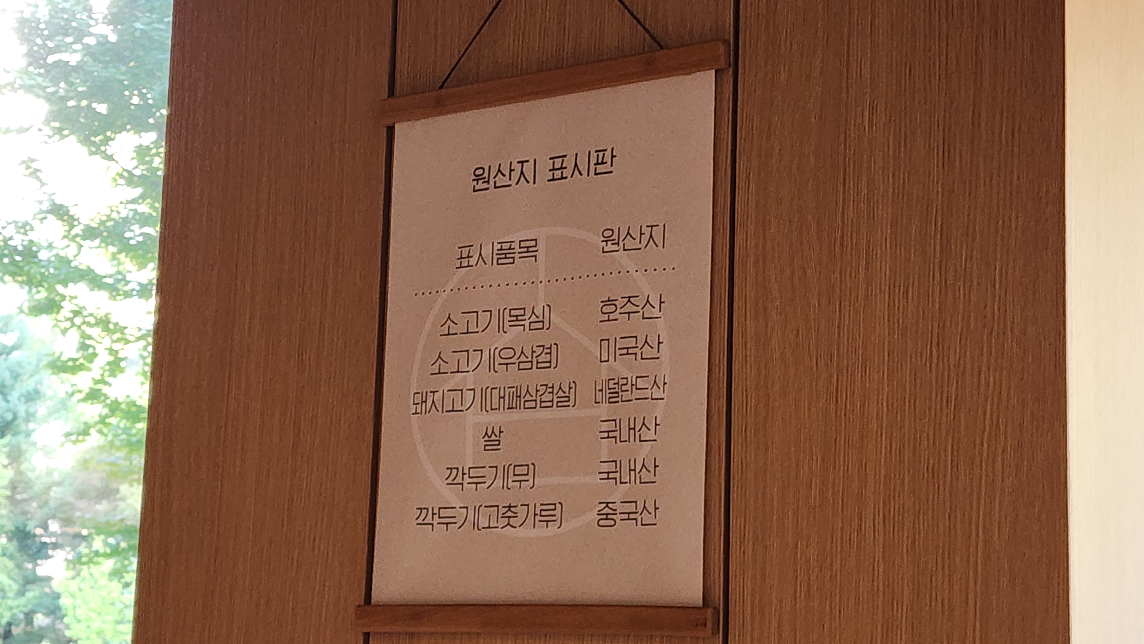 소고기 목심은 호주산, 우삼겹은 미국산, 돼지고기는 네덜란드산 이었고요 쌀과 깍두기 무는 국내산 고추가루는 중국산을 쓰고 있었어요.