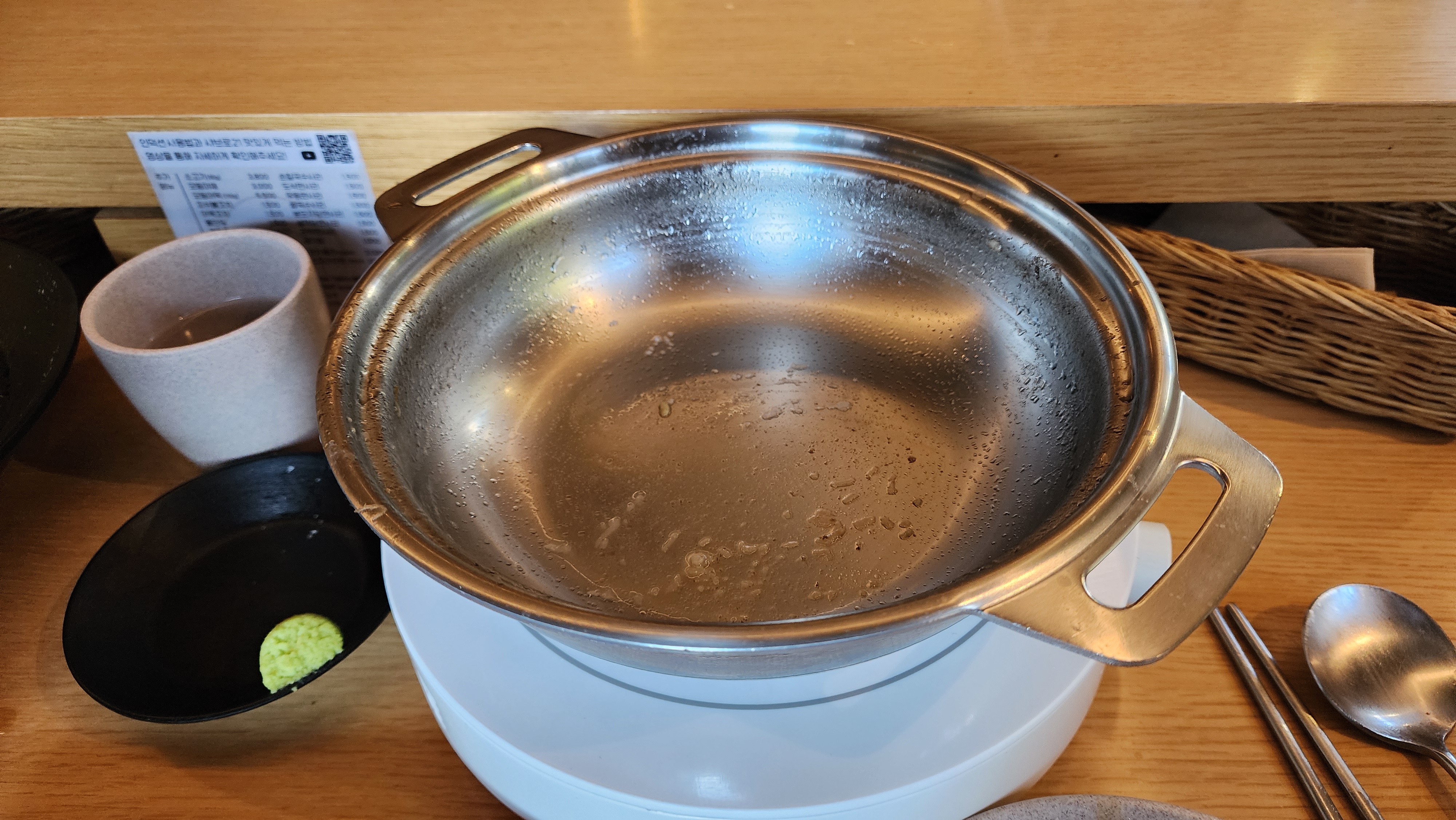인덕션 위에 냄비를 올려 육수가 끓으면