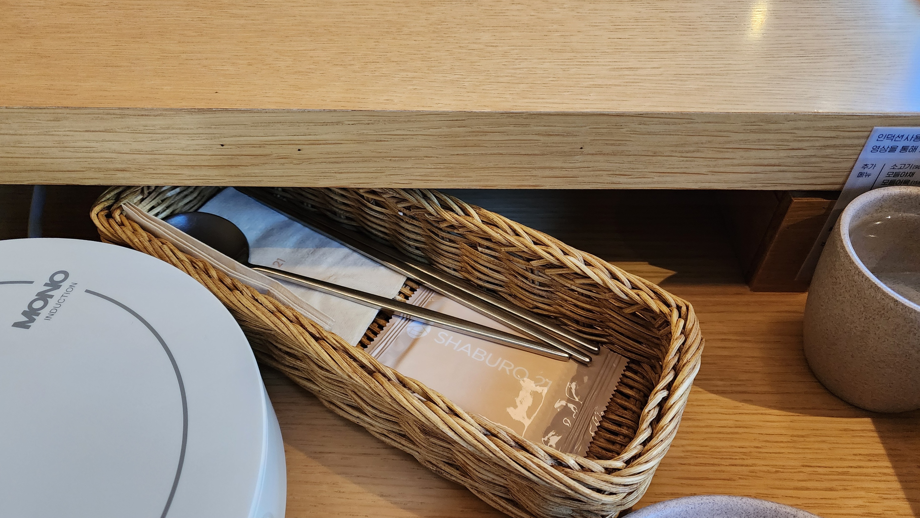 바구니 안에는 수저, 젓가락, 냅킨, 물티슈가 들어있었답니다.