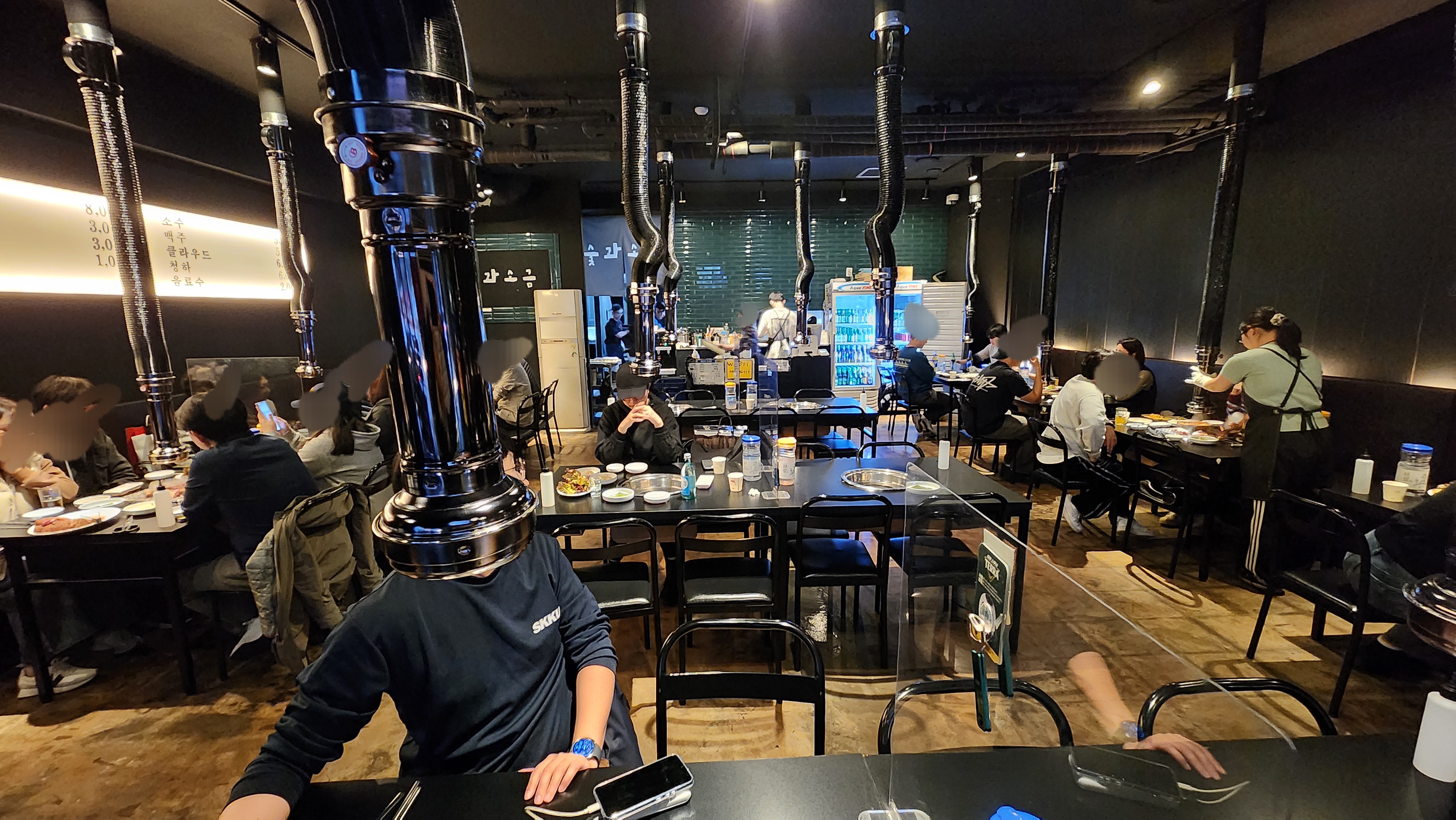 측면에는 소파로 되어있고 나머지 좌석은 의자로 되어있었고요 테이블은 4인석을 기준으로 마련되어있더군요.