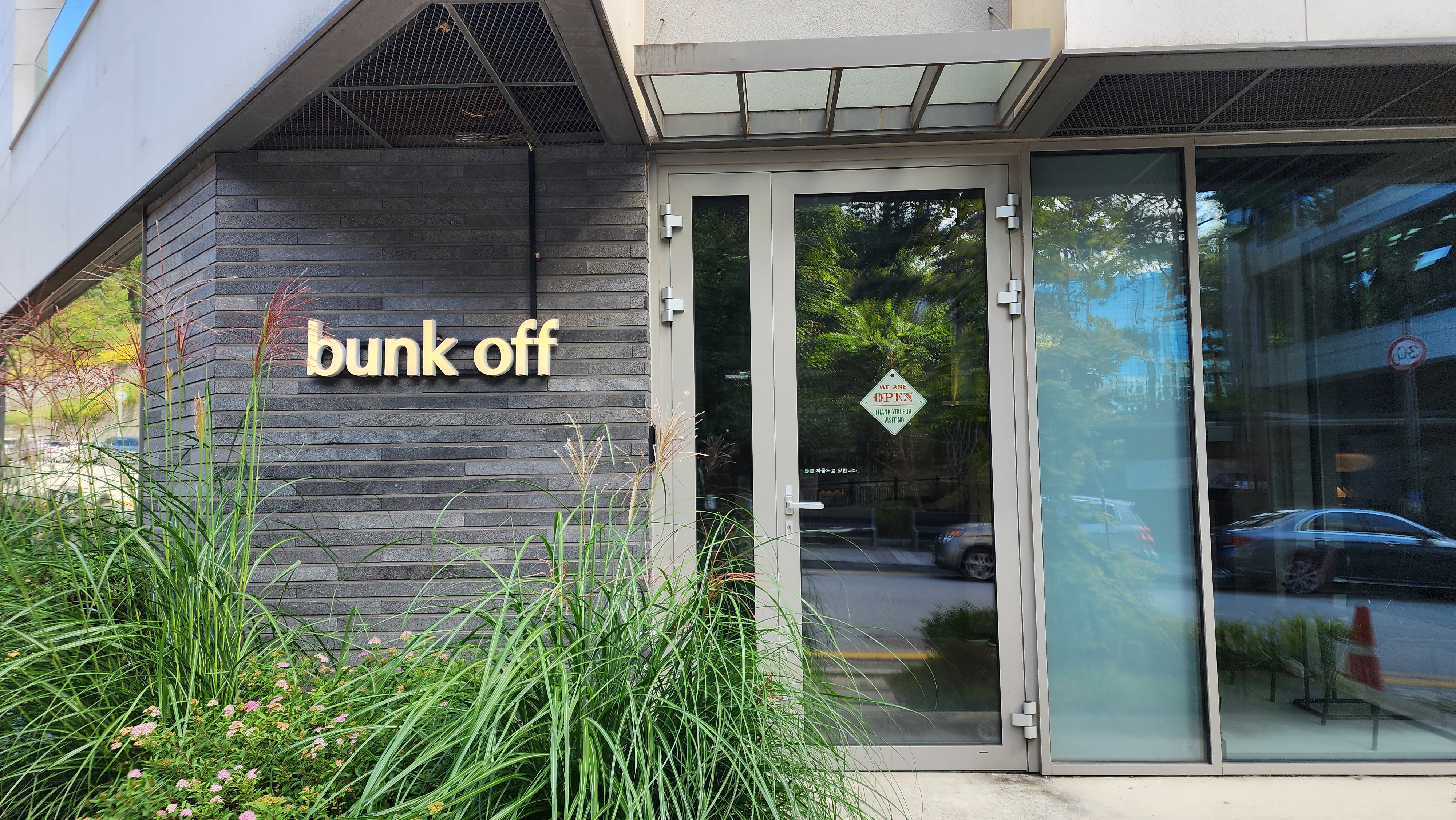 판교 고등지구에 위치한 벙크오프는 외관이 아주 깔끔해요.