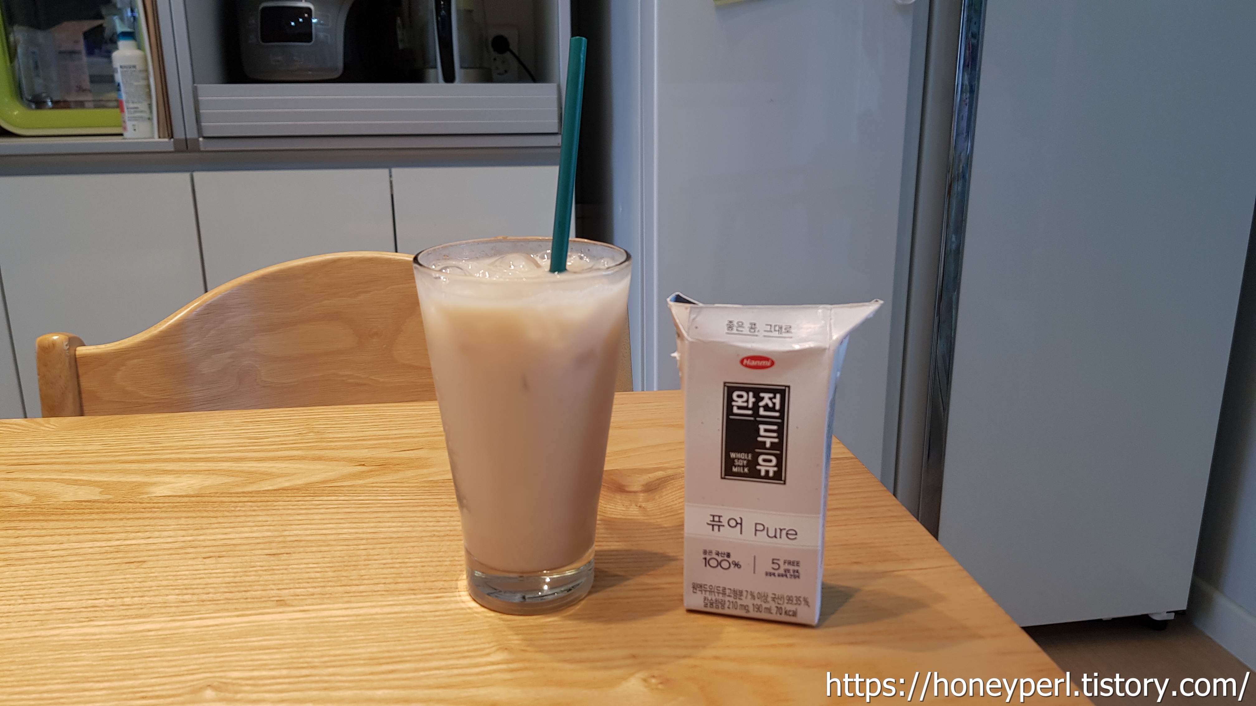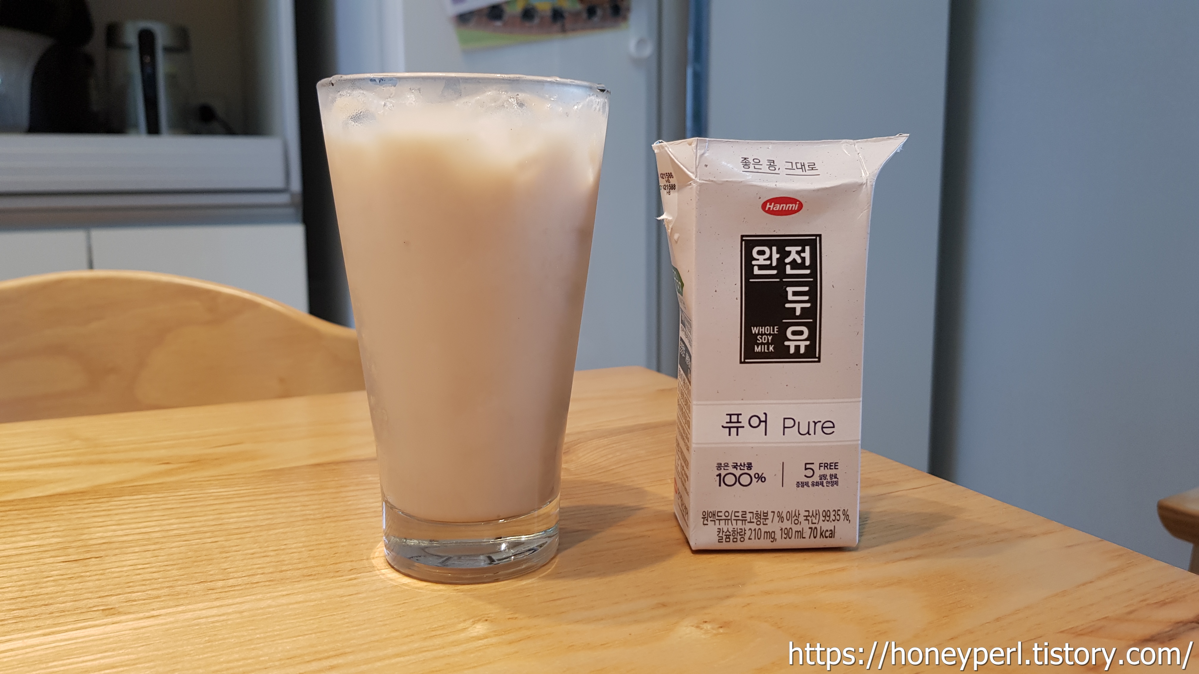 그래서 첨가물 없는 두유가 이렇게 비린맛이 없고 이물감도 없이 깔끔한 맛이 나나봐요.