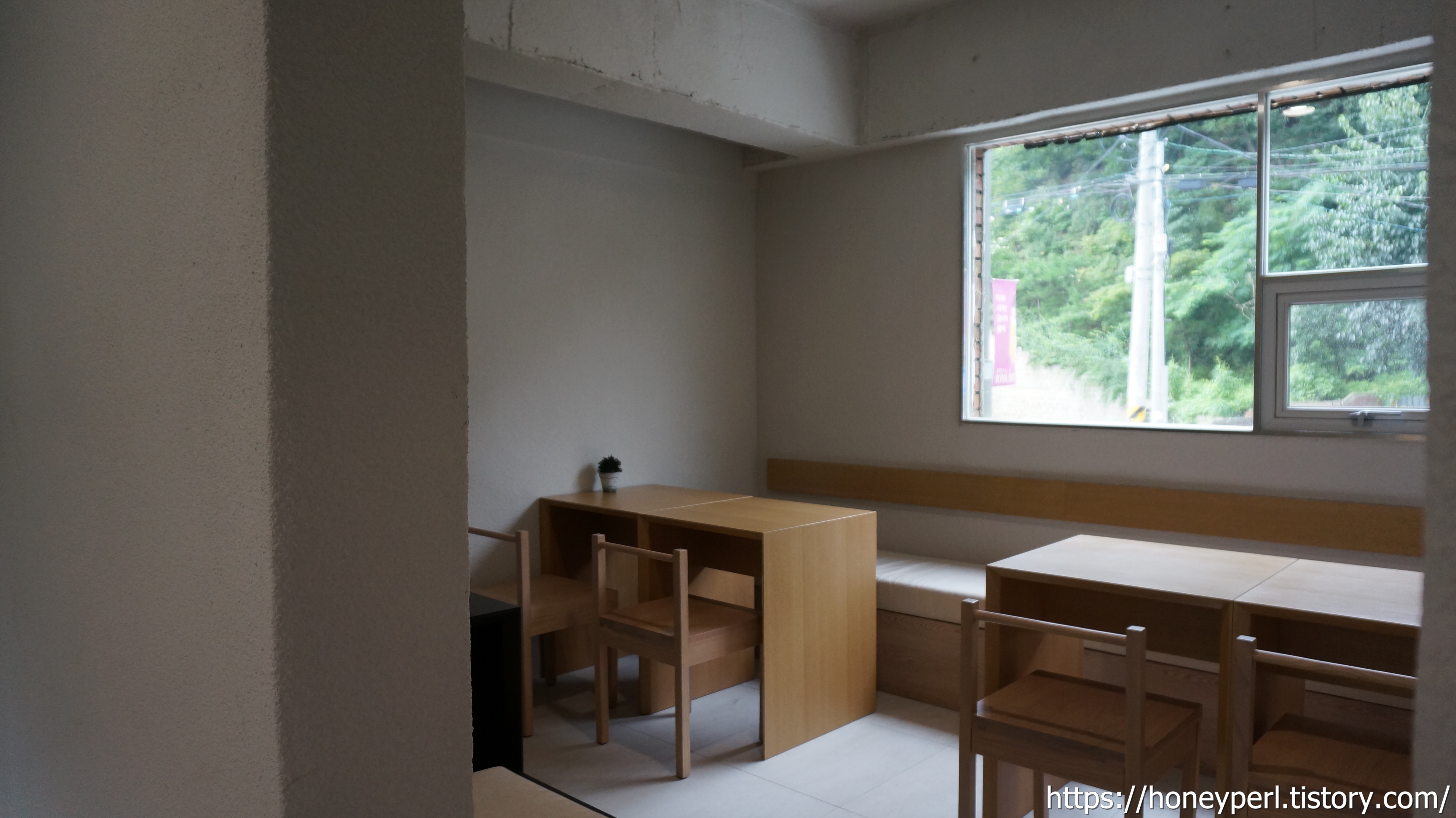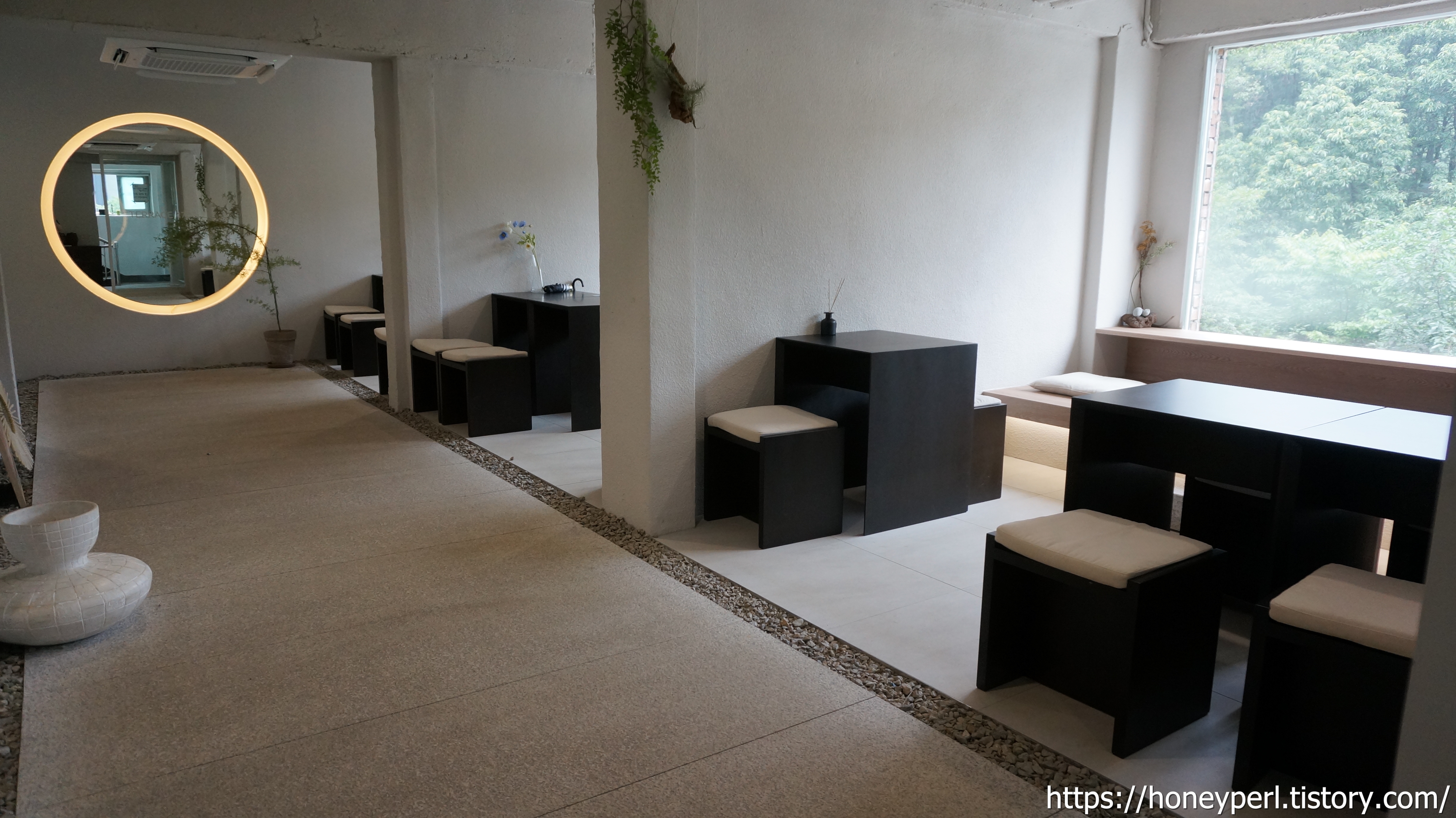 의자가 놓여진 자리도 있고 바깥 풍경을 즐길 수 있도록 신발을 벗고 앉는 좌식 테이블도 있어 기호에 따라 자리를 잡으면 될 것 같았어요.